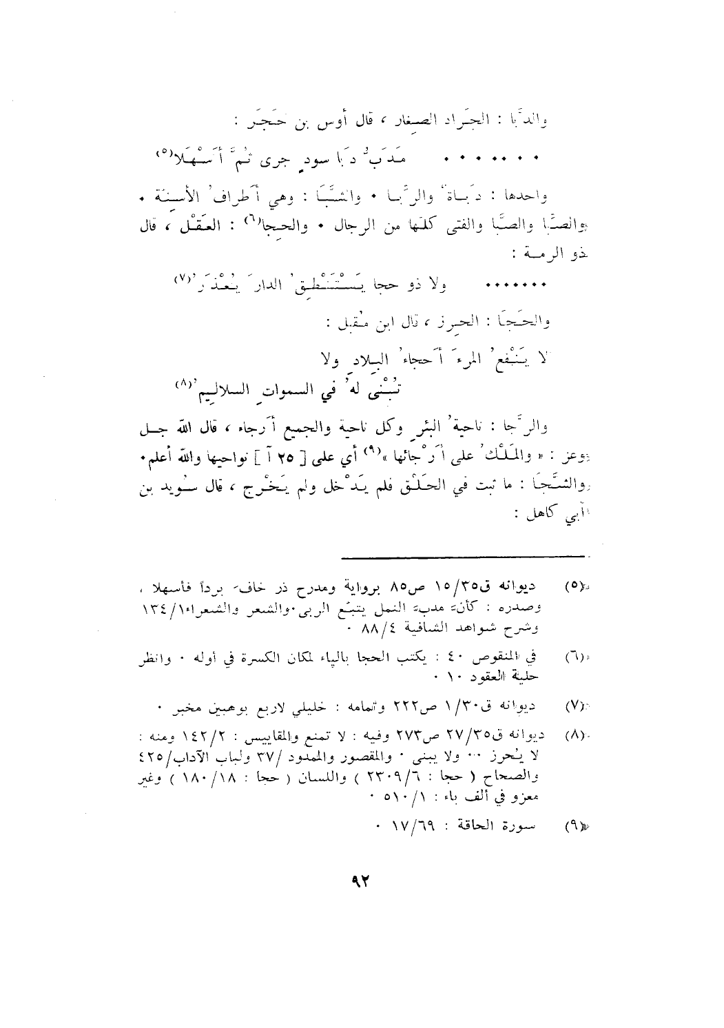 والحَجَا: الحِرْز، قال ابن مقبل: