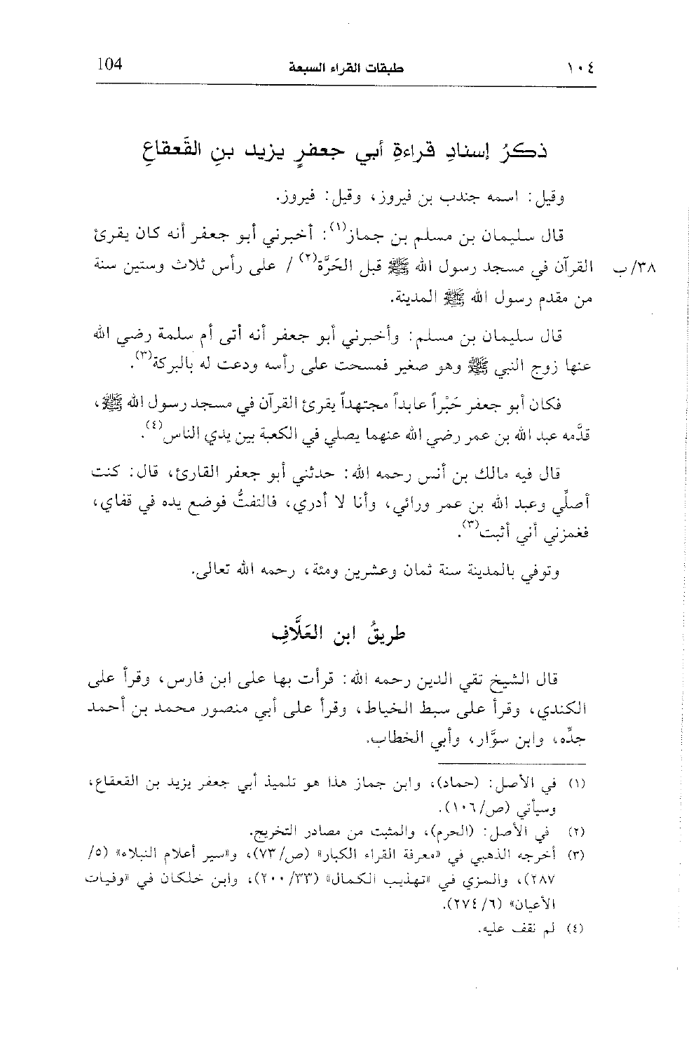 ذكر إسناد قراءة أبي جعفر يزيد بن القعقاع