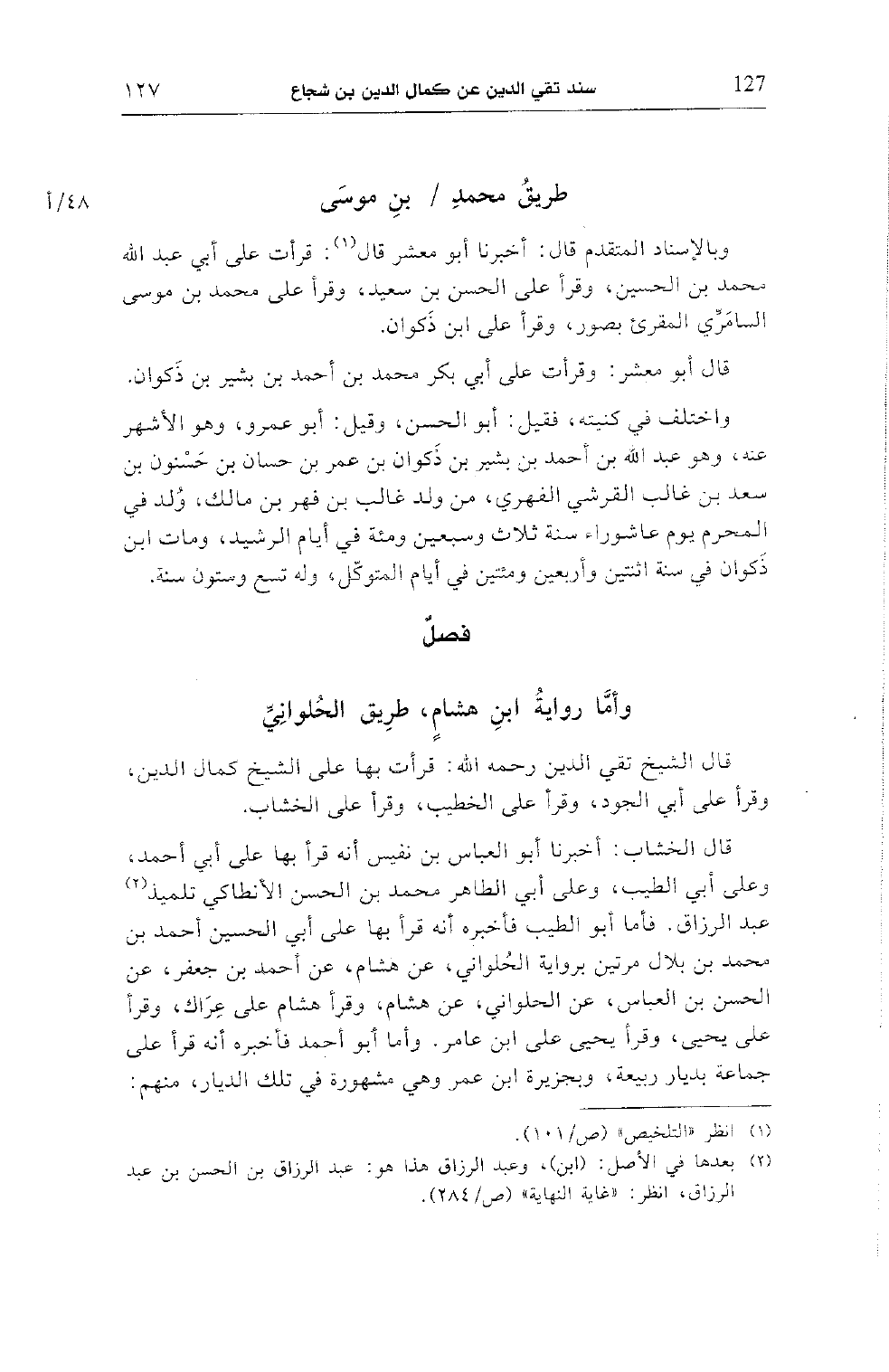 فصل وأمّا رواية ابن هشام، طريق الحلوانيّ
