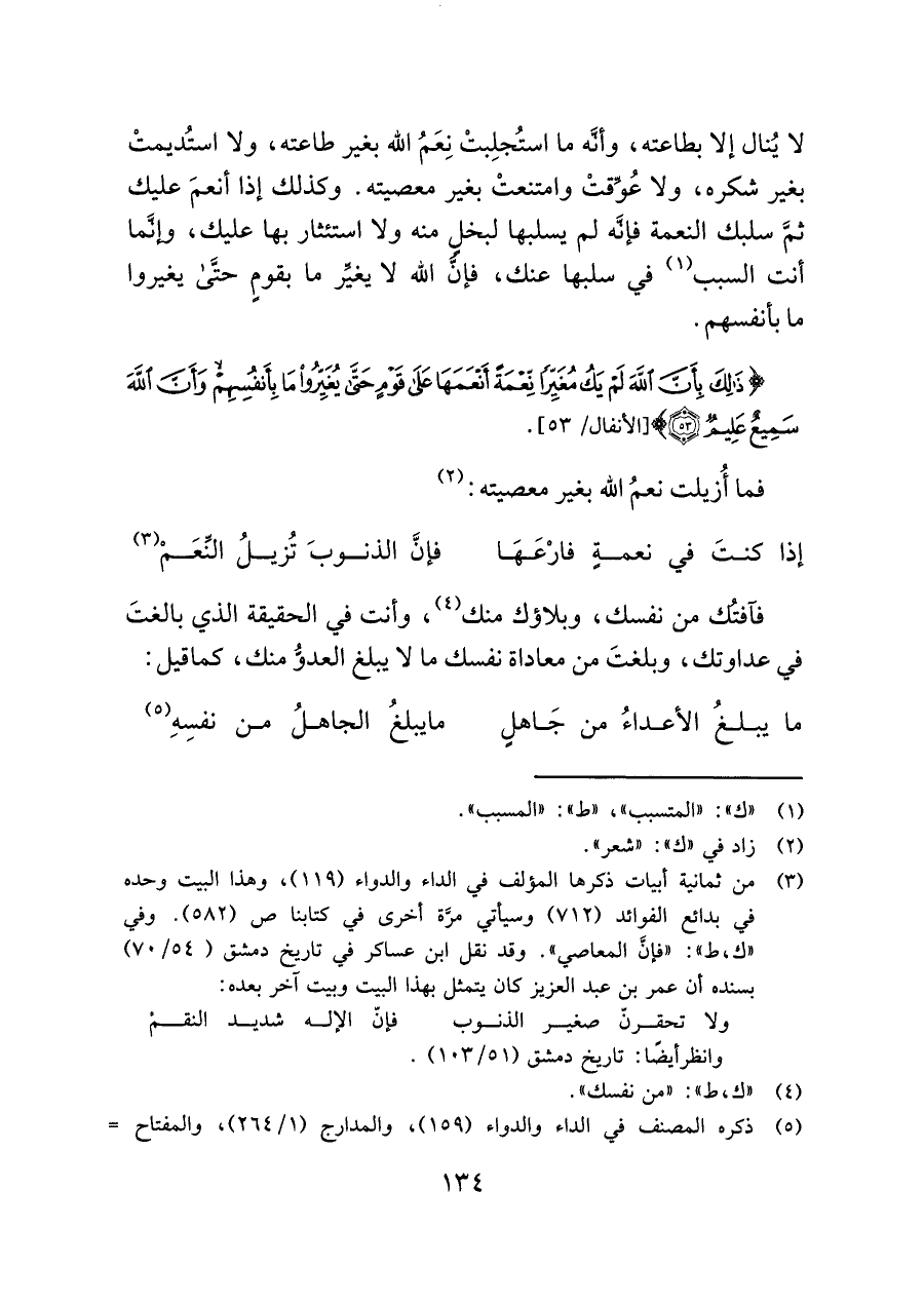 (¬٥) ذكره المصنف في الداء والدواء (١٥٩)، والمدارج (١/ ٢٦٤)، والمفتاح =