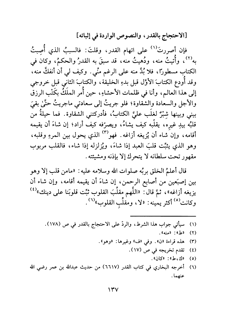 (¬١) سيأتي جواب هذا الشرط، والرد على الاحتجاج بالقدر في ص (١٧٧).