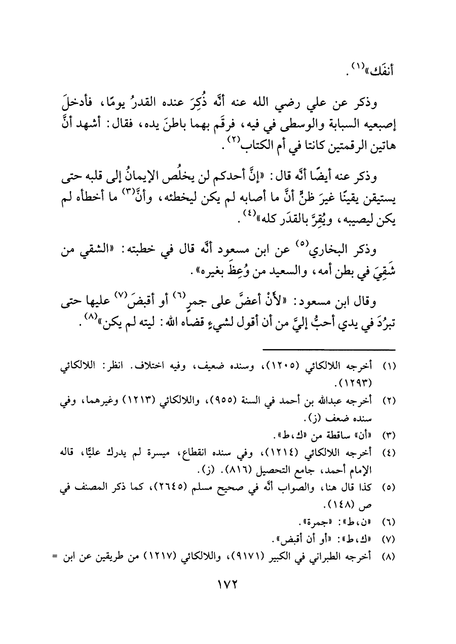 (¬٢) أخرجه عبد اللَّه بن أحمد في السنة (٩٥٥)، واللالكائي (١٢١٣) وغيرهما، وفي سنده ضعف (ز).