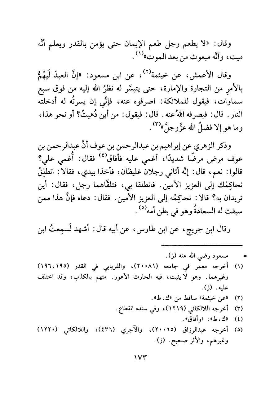 (¬٥) أخرجه عبد الرزاق (٢٠٠٦٥)، والآجري (٤٣٦)، واللالكائي (١٢٢٠) وغيرهم، والأثر صحيح. (ز).