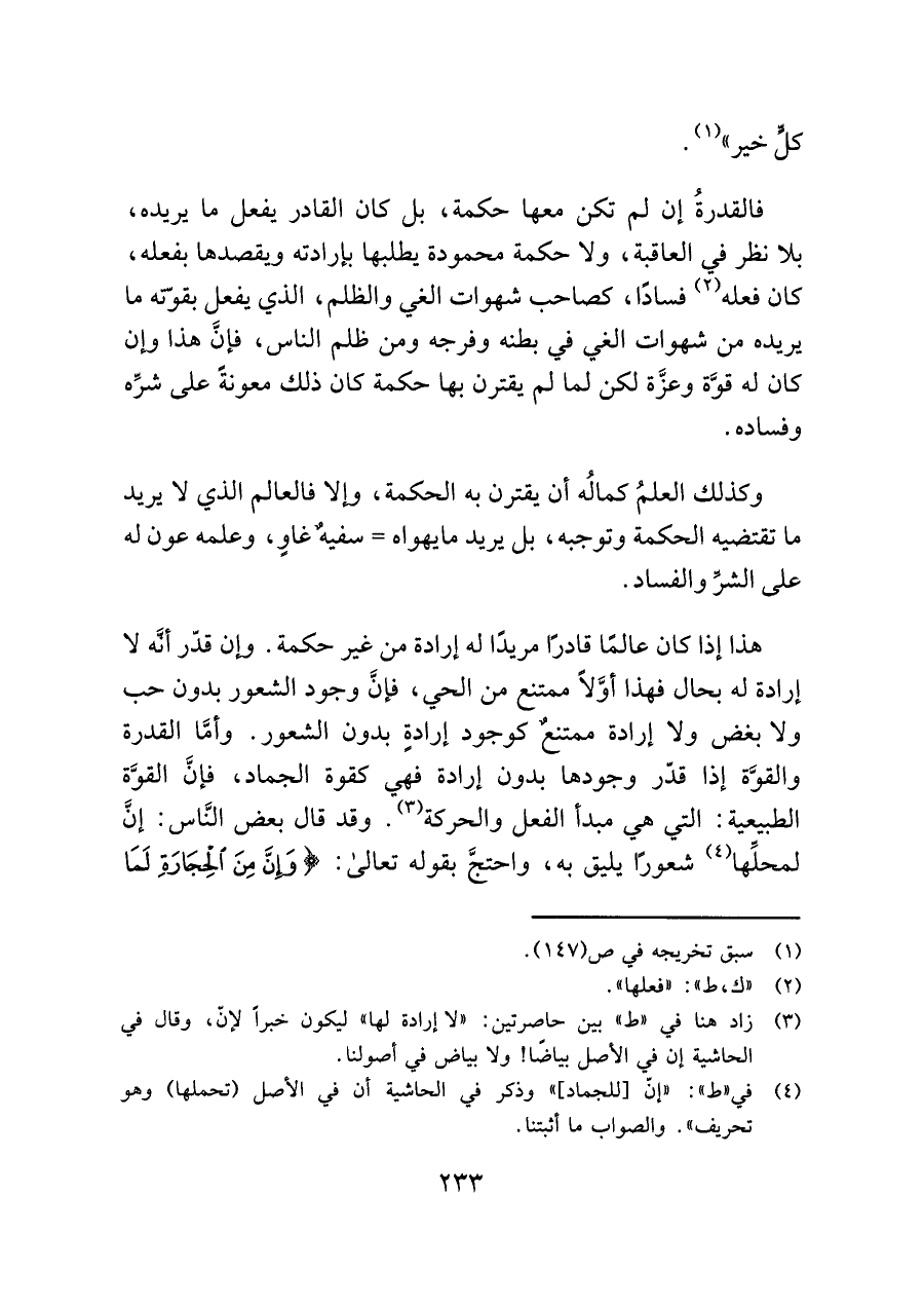 (¬٣) زاد هنا في "ط" بين حاصرتين: "لا إرادة لها" ليكون خبرًا لإنّ، وقال في الحاشية إن في الأصل بياضًا! ولا بياض في أصولنا.