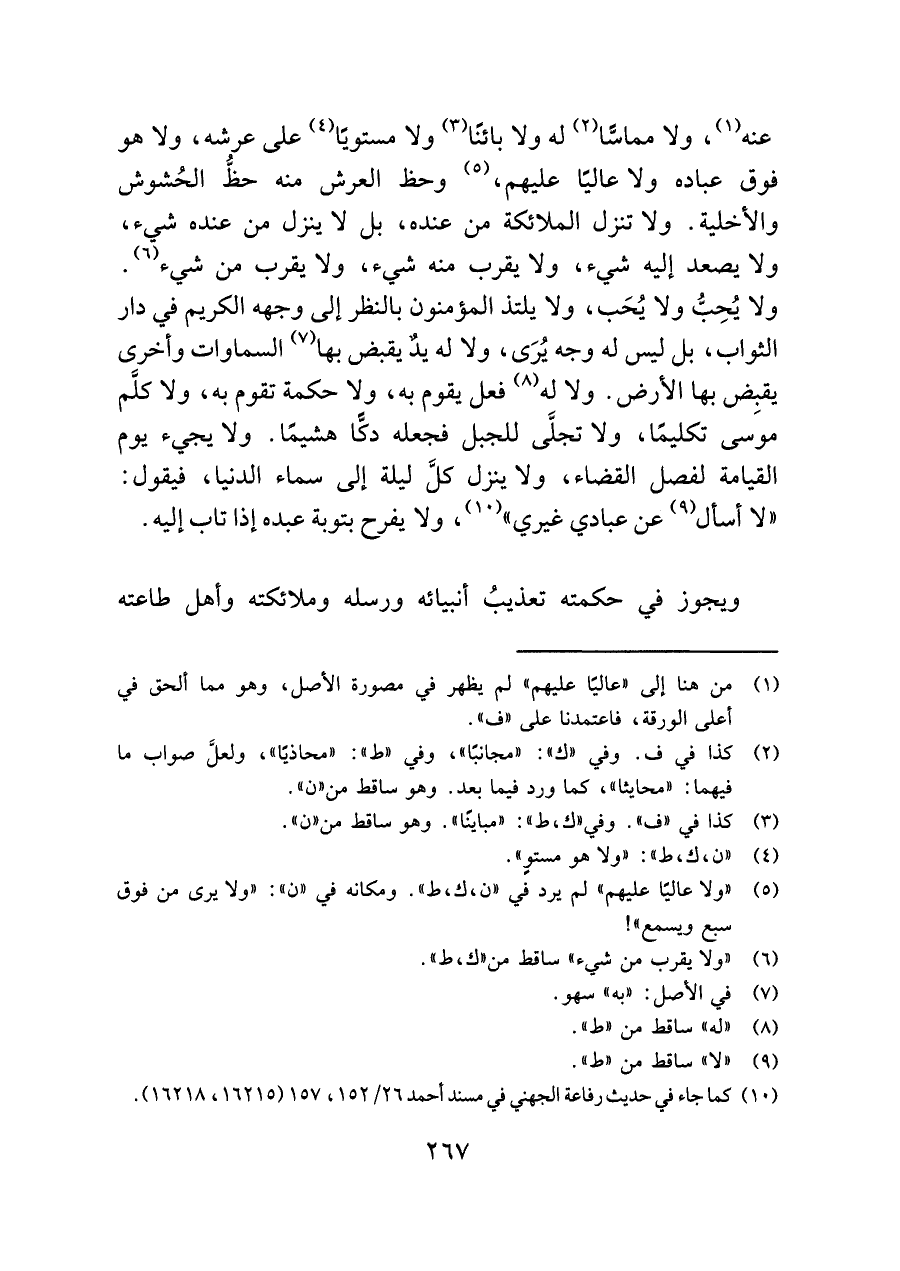 (¬٥) "ولا عاليًا عليهم" لم يرد في "ن، ك، ط". ومكانه في "ن": "ولا يرى من فوق سبع ويسمع"!