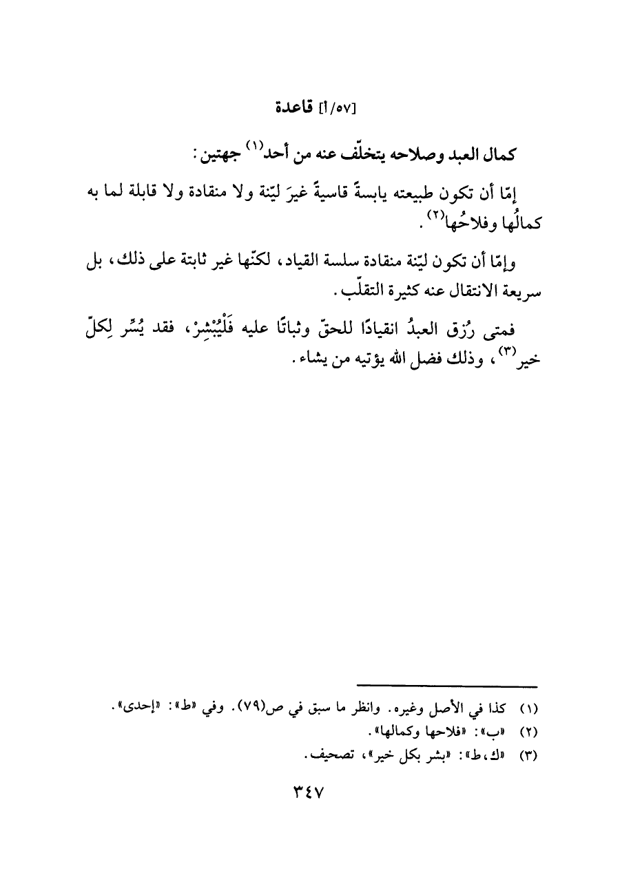 (¬٢) "ب": "فلاحها وكمالها".