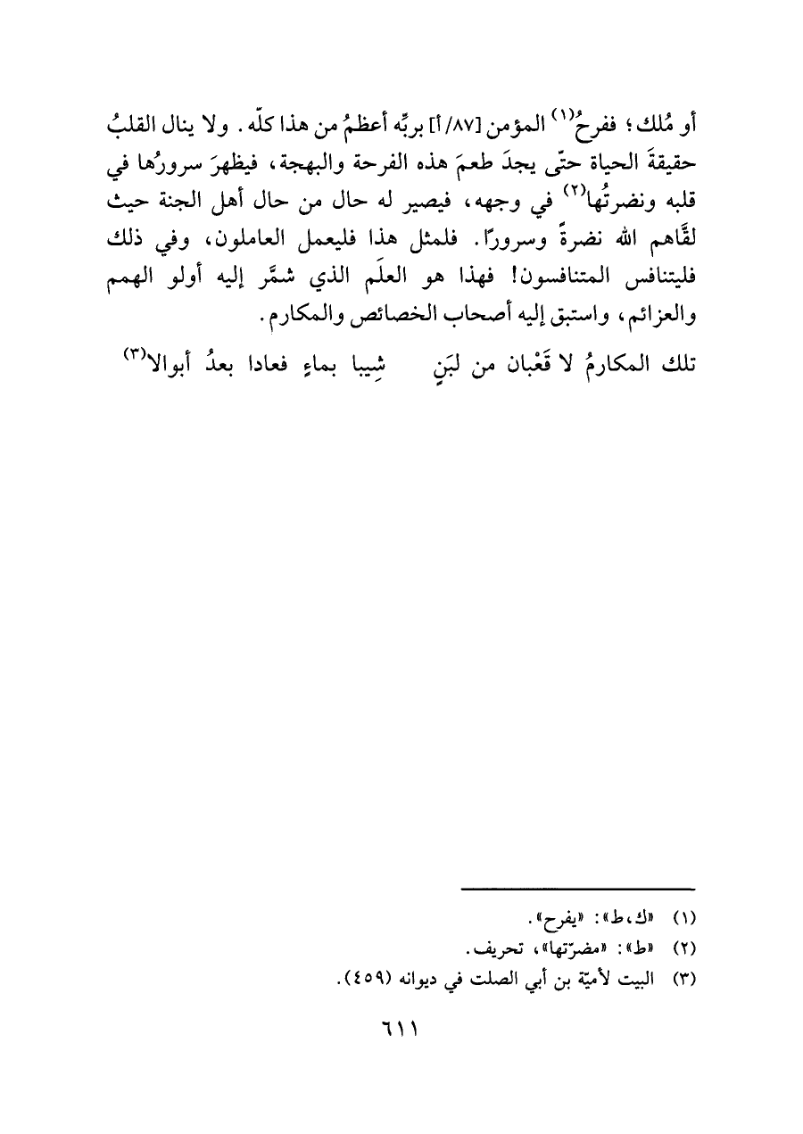 (¬٣) البيت لأميّة بن أبي الصلت في ديوانه (٤٥٩).