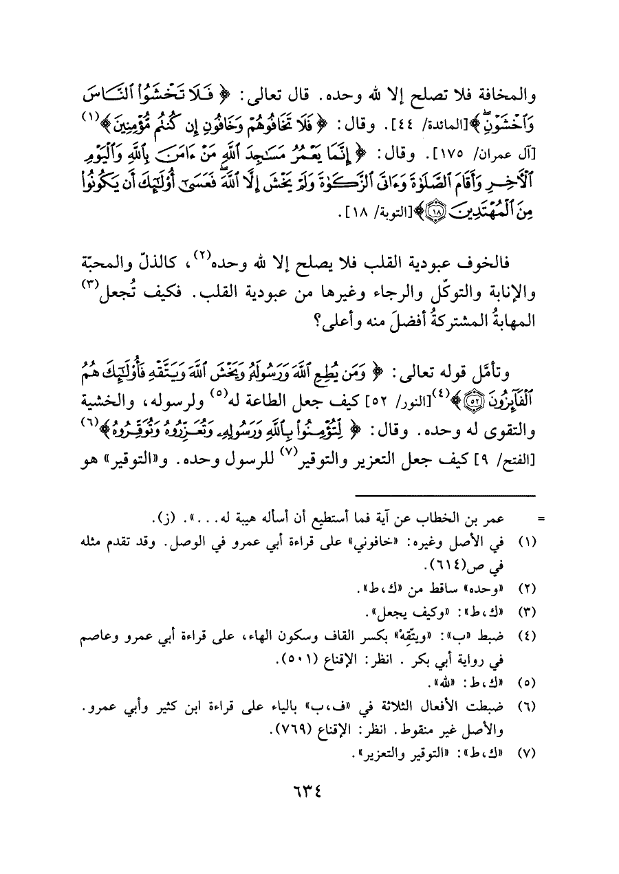 (¬٧) "ك، ط": "التوقير والتعزير".