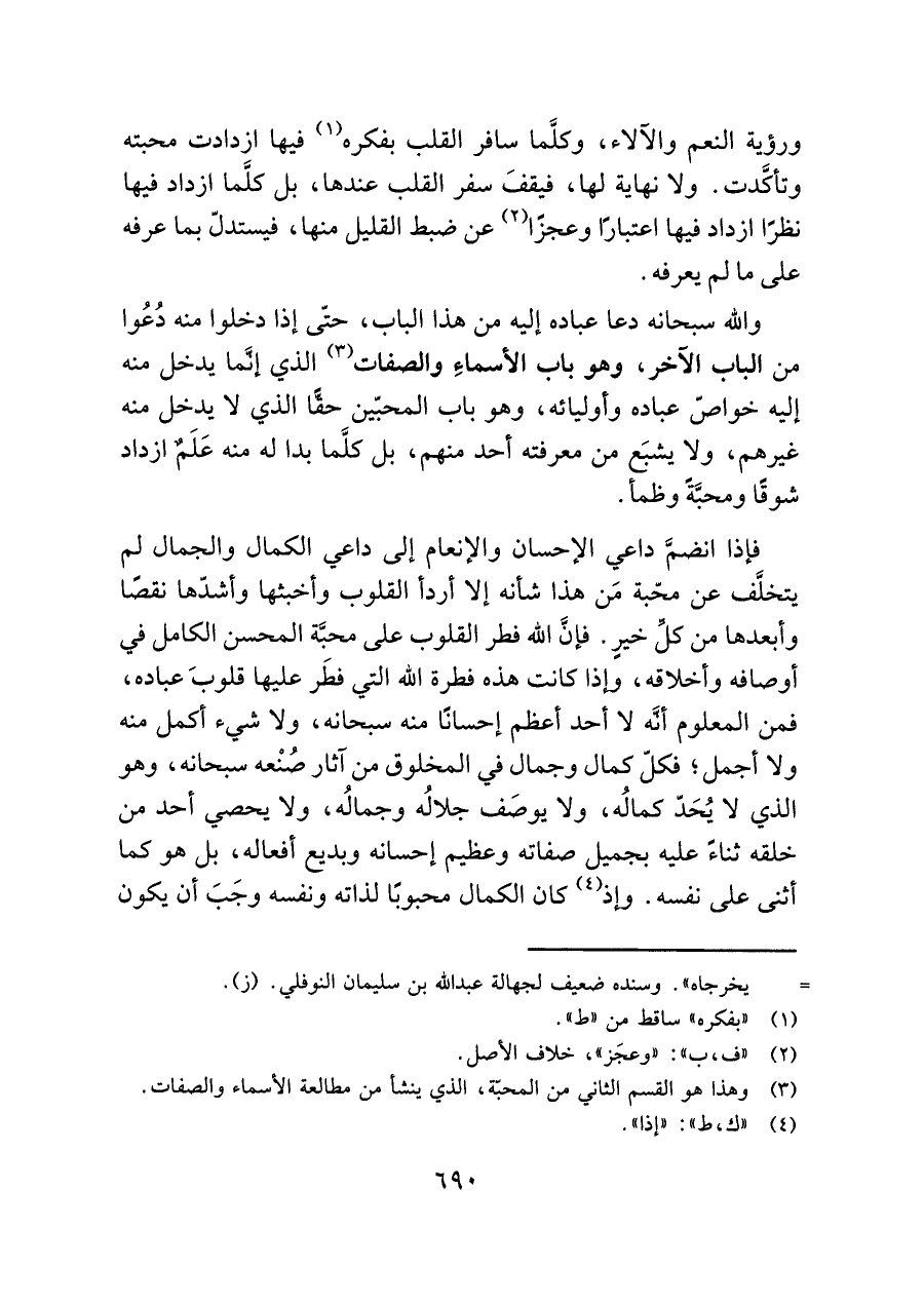 (¬٣) وهذا هو القسم الثاني من المحبة، الذي ينشأ من مطالعة الأسماء والصفات.