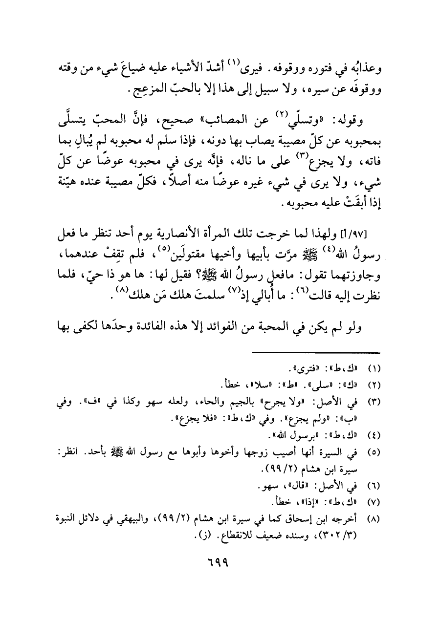 (¬٣) في الأصل: "ولا يجرح" بالجيم والحاء، ولعله سهو وكذا في "ف". وفي "ب": "ولم يجزع". وفي "ك، ط": "فلا يجزع".