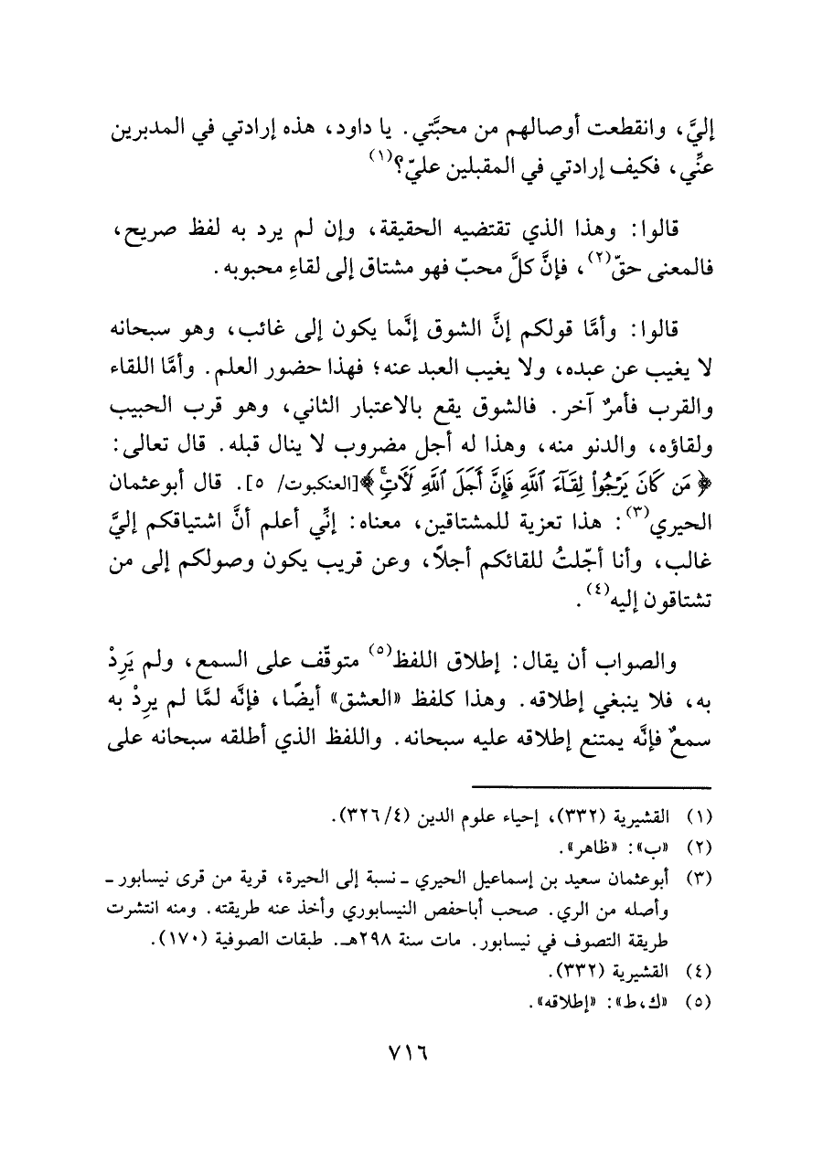 (¬١) القشيرية (٣٣٢)، إحياء علوم الدين (٤/ ٣٢٦).