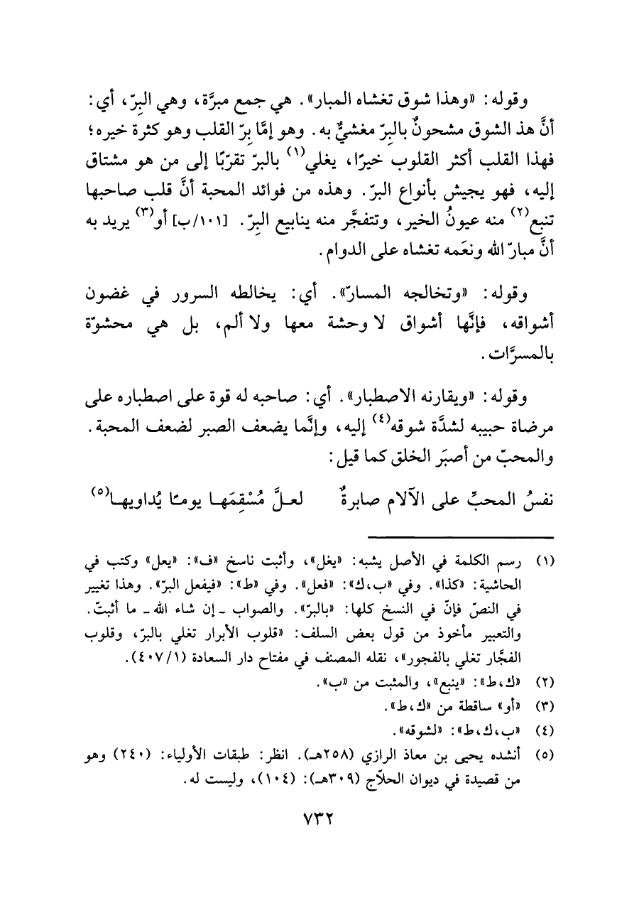 (¬٥) أنشده يحيى بن معاذ الرازي (٢٥٨ هـ). انظر: طبقات الأولياء: (٢٤٠) وهو من قصيدة في ديوان الحلّاج (٣٠٩ هـ): (١٠٤)، وليست له.