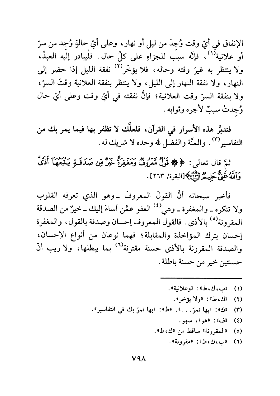 (¬١) "ب، ك، ط": "وعلانية".