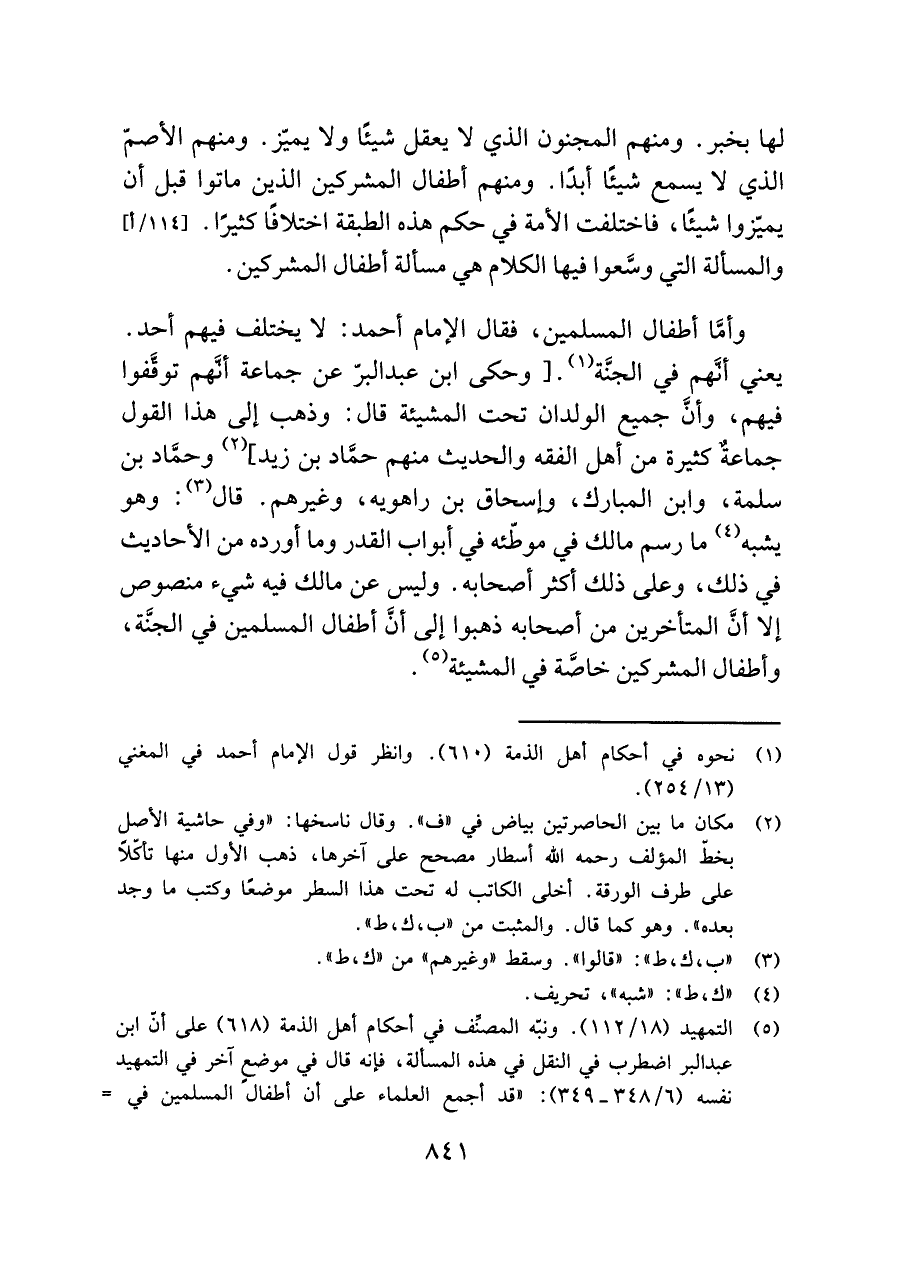 (¬٥) التمهيد (١٨/ ١١٢). ونبّه المصنِّف في أحكام أهل الذمة (٦١٨) على أنّ ابن عبد البر اضطرب في النقل في هذه المسألة، فإنه قال في موضعٍ آخر في التمهيد نفسه (٦/ ٣٤٨ - ٣٤٩): "قد أجمع العلماء على أن أطفال المسلمين في =