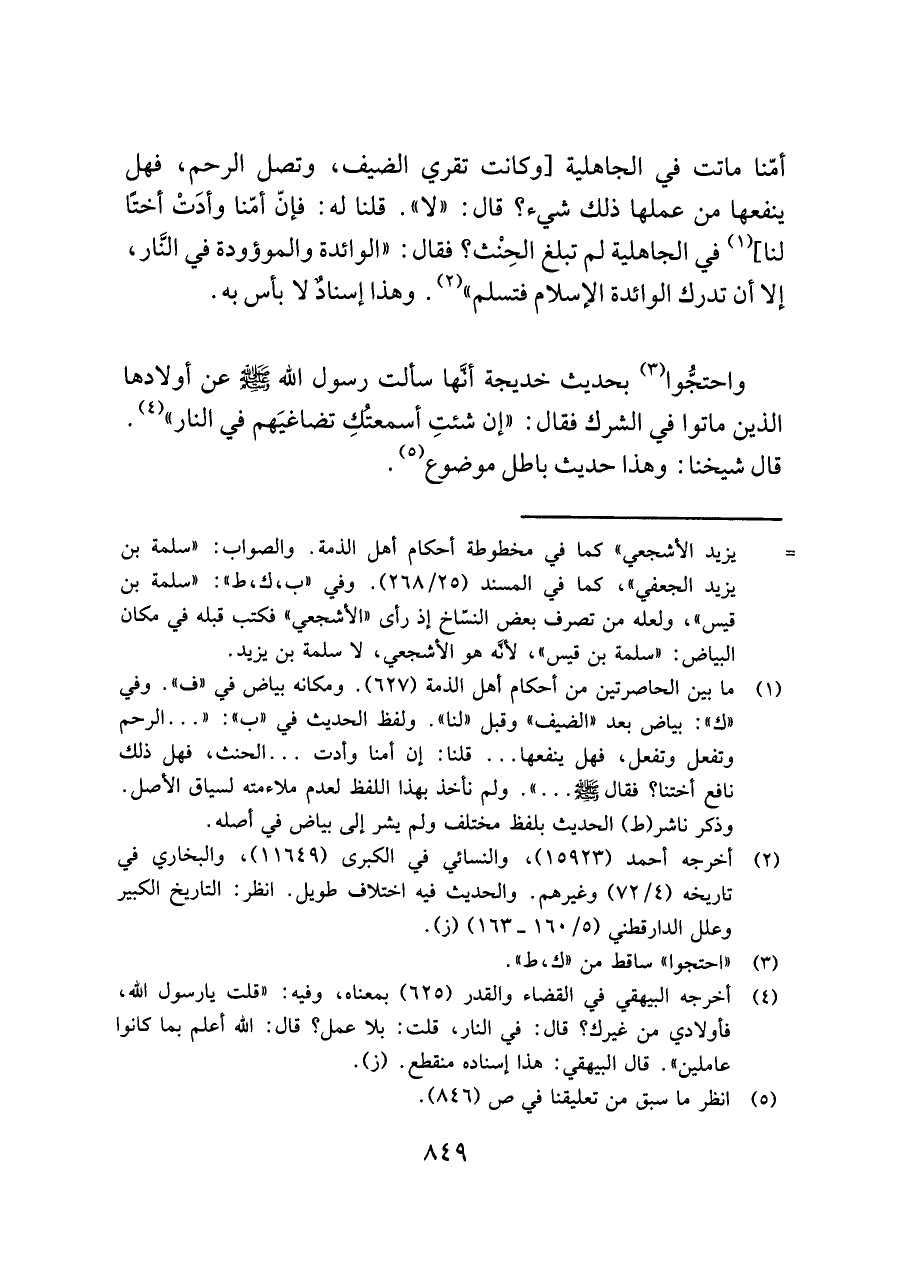 (¬١) ما بين الحاصرتين من أحكام أهل الذمة (٦٢٧). ومكانه بياض في "ف". وفي "ك": بياض بعد "الضيف" وقبل "لنا". ولفظ الحديث في "ب": ". . . الرحم وتفعل وتفعل، فهل ينفعها. . . قلنا: إن أمنا وأدت. . . الحنث، فهل ذلك نافع أختنا؟ فقال -صلى اللَّه عليه وسلم-. . . ". ولم نأخذ بهذا اللفظ لعدم ملاءمته لسياق الأصل. وذكر ناشر (ط) الحديث بلفظ مختلف ولم يشر إلى بياض في أصله.