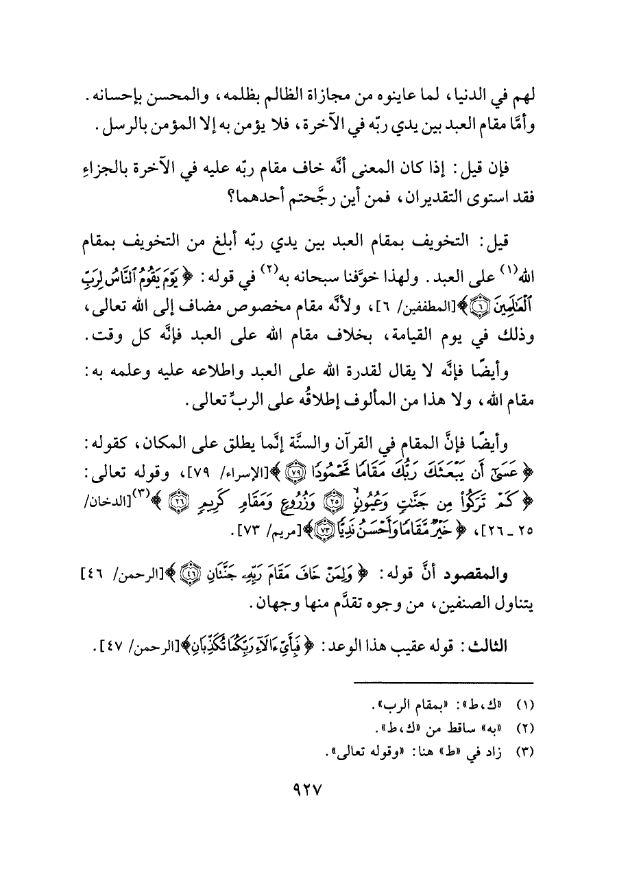 (¬١) "ك، ط": "بمقام الرب".