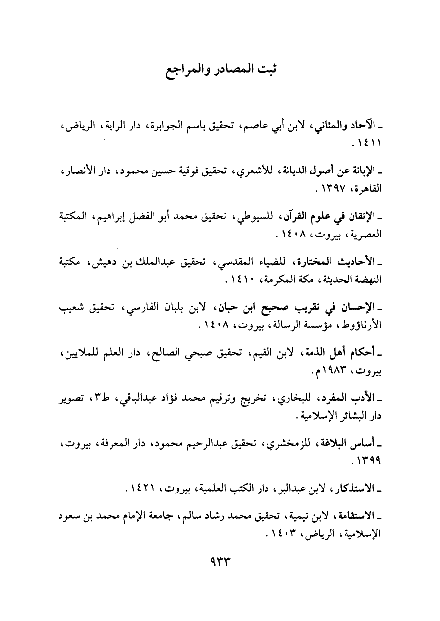 - الإبانة عن أصول الديانة، للأشعري، تحقيق فوقية حسين محمود، دار الأنصار، القاهرة، ١٣٩٧.