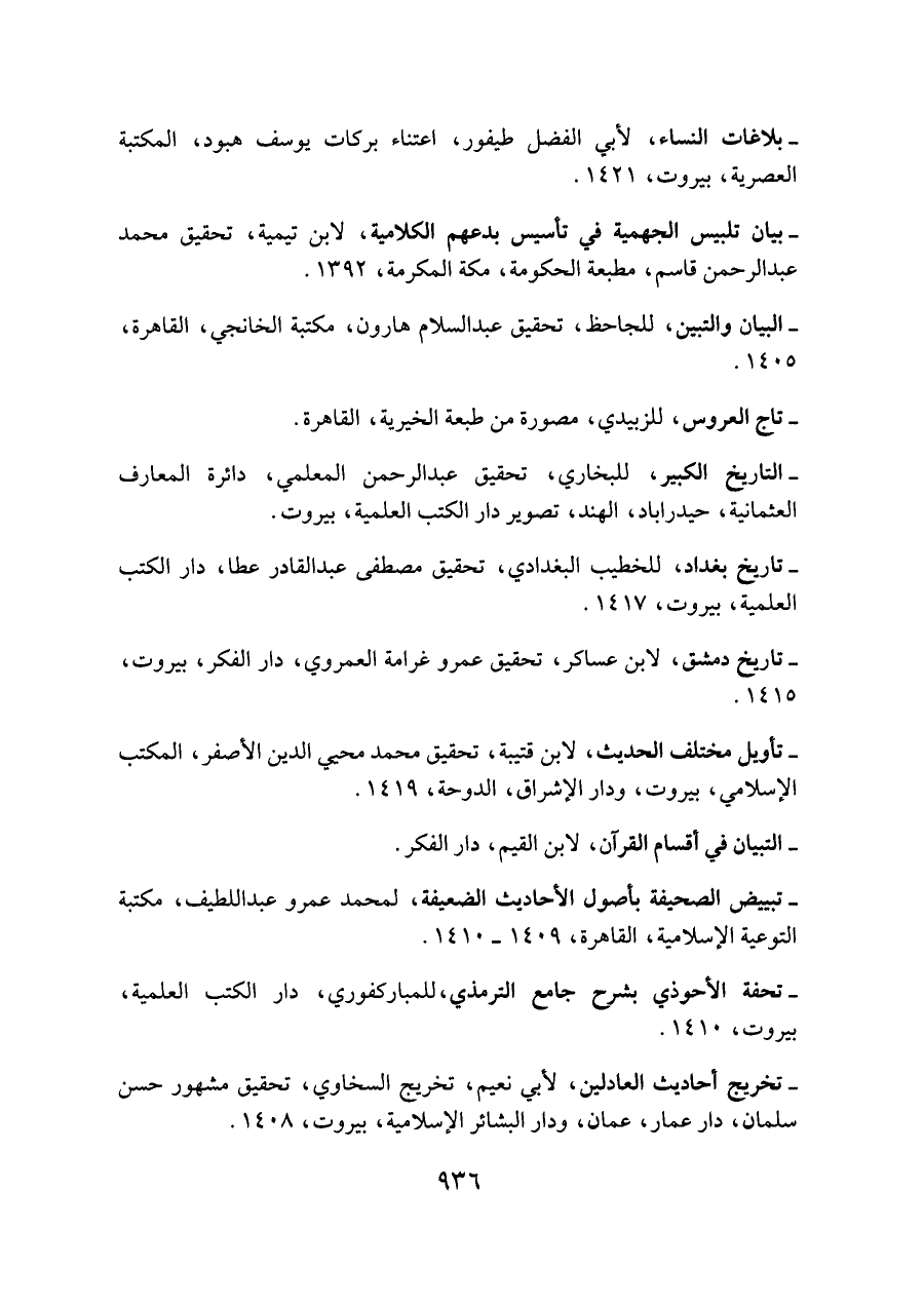 - بلاغات النساء، لأبي الفضل طيفور، اعتناء بركات يوسف هبود، المكتبة العصرية، بيروت، ١٤٢١.