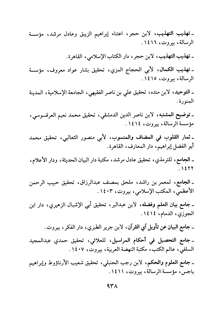 - تهذيب الكمال، لأبي الحجاج المزي، تحقيق بشار عواد معروف، مؤسسة الرسالة، بيروت، ١٤١٥.