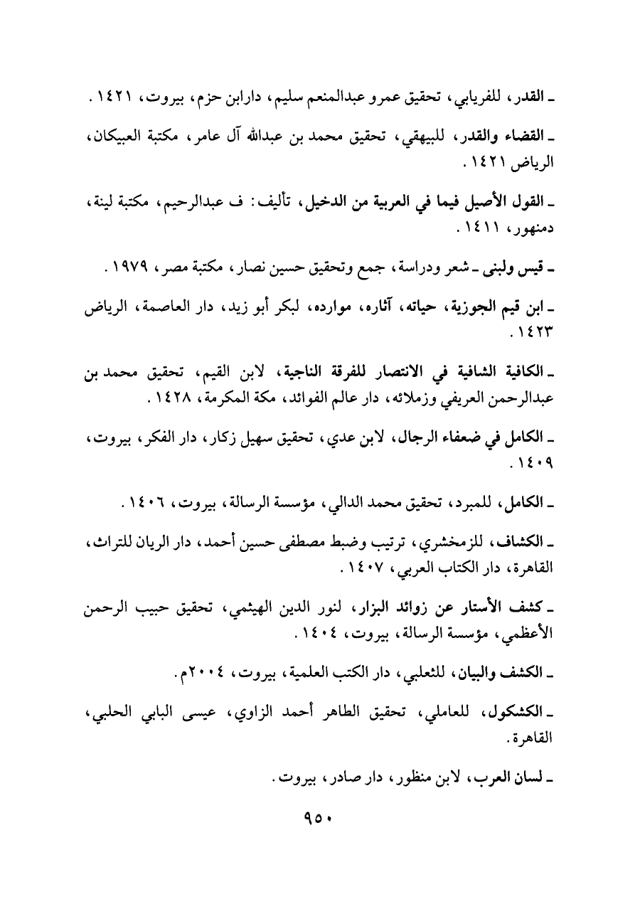 - القدر، للفريابي، تحقيق عمرو عبد المنعم سليم، دار ابن حزم، بيروت، ١٤٢١.