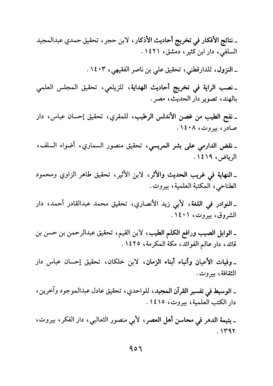 - نفح الطيب من غصن الأندلس الرطيب، للمقري، تحقيق إحسان عباس، دار صادر، بيروت، ١٤٠٨.