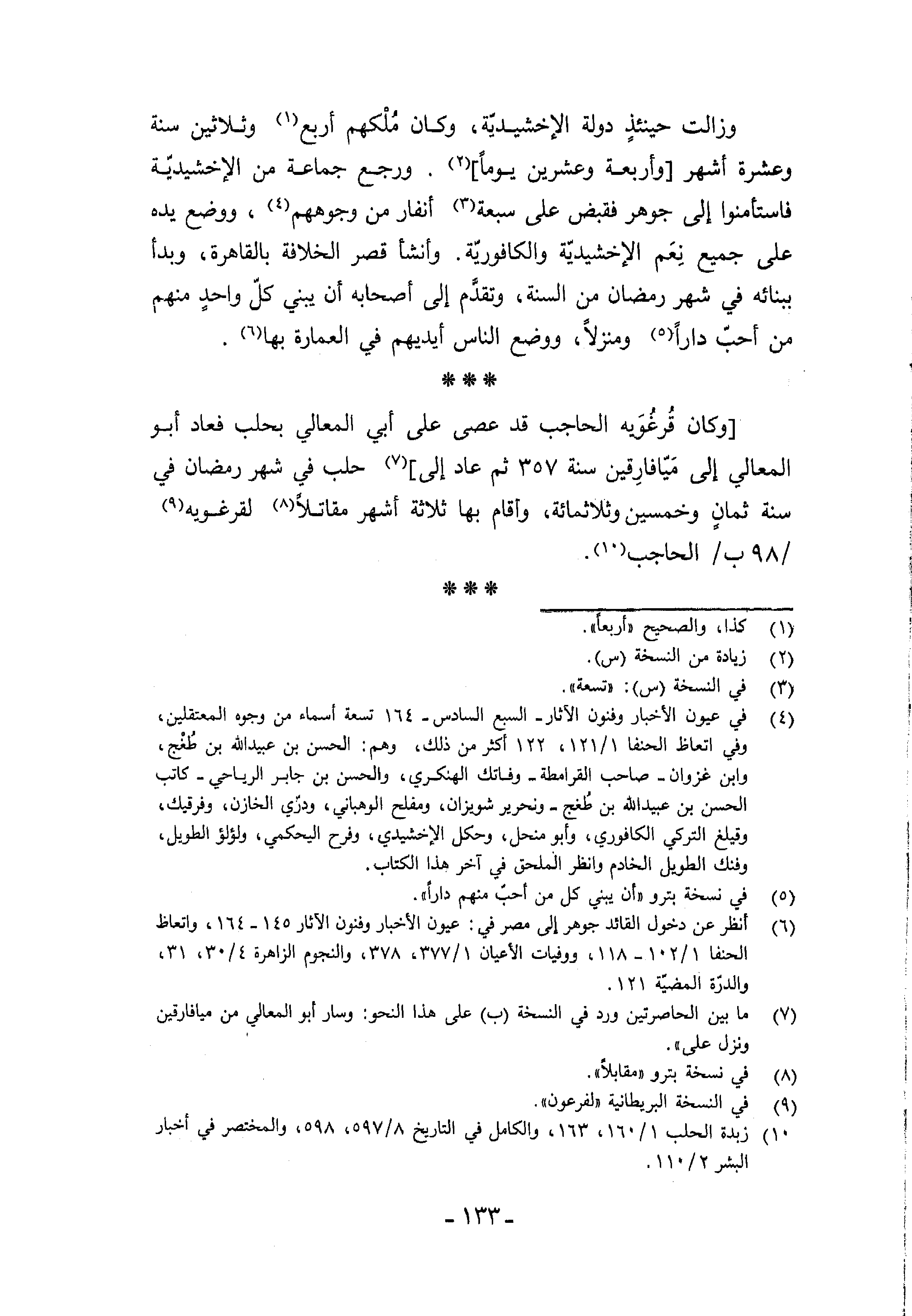 (¬10) زبدة الحلب 1/ 160،163، والكامل في التاريخ 8/ 597،598، والمختصر في أخبار البشر 2/ 110.