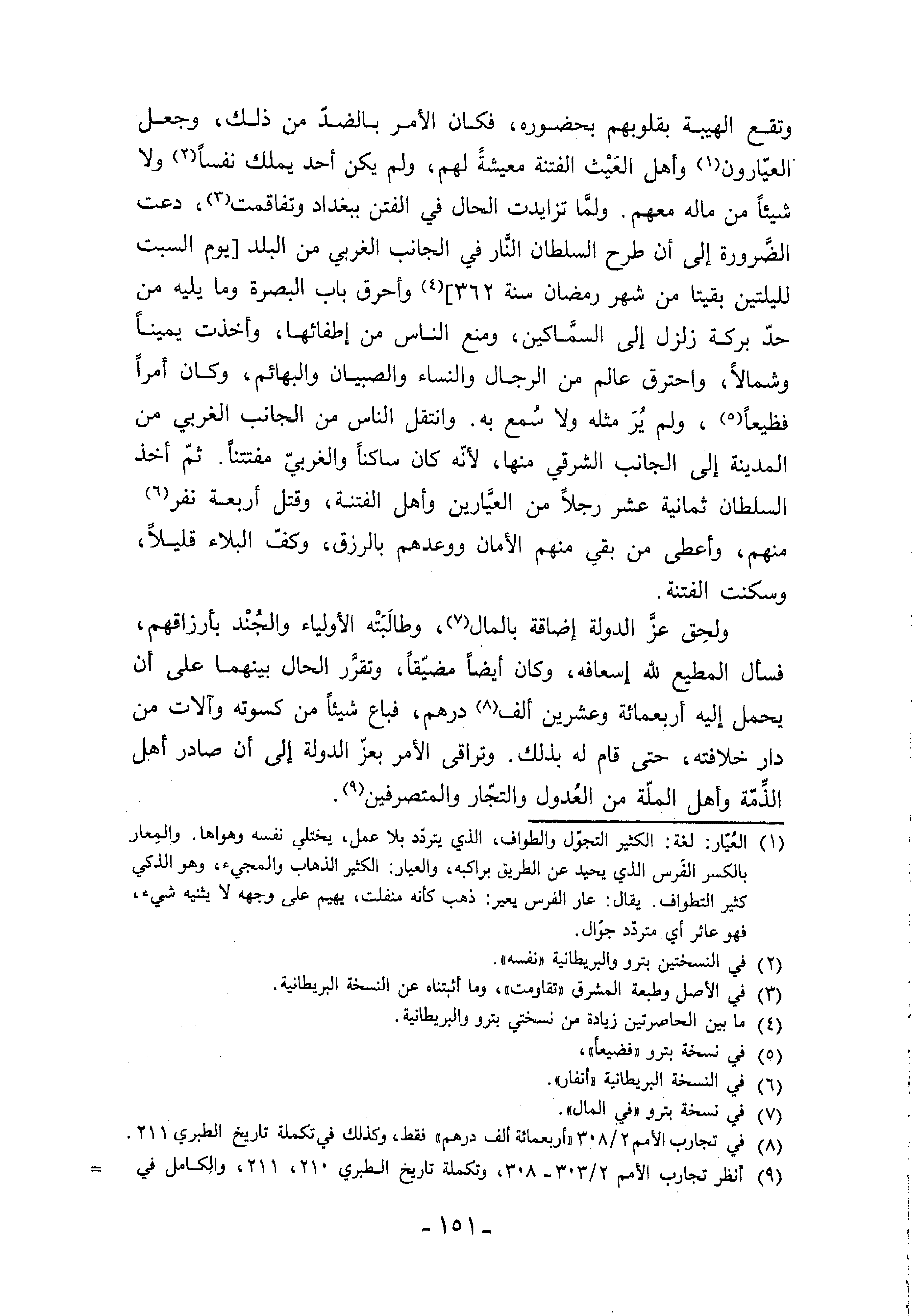 (¬9) أنظر تجارب الأمم 2/ 303 - 308، وتكملة تاريخ الطبري 210،211، والكامل في-