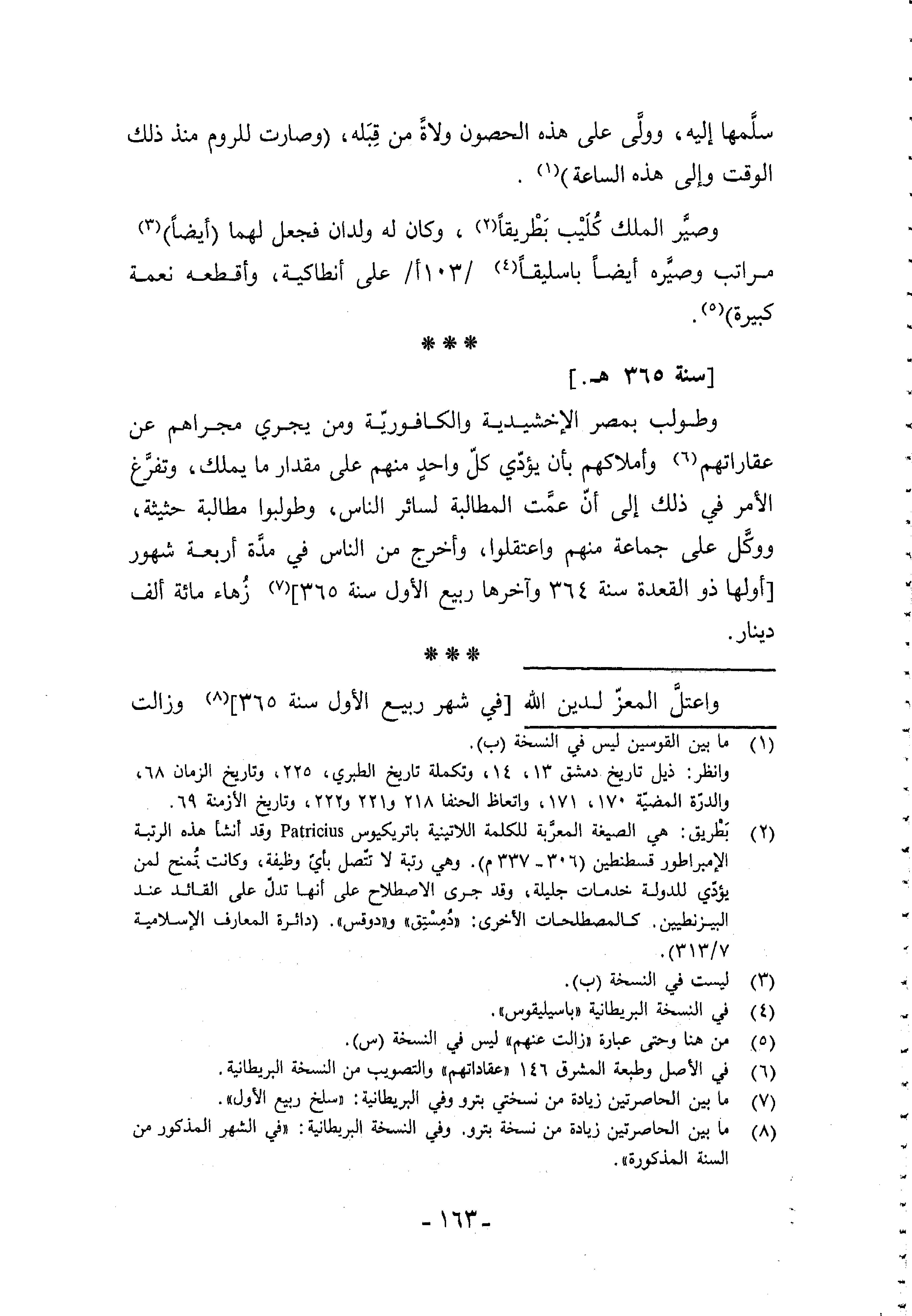 وصيّر الملك كليب بطريقا (¬2)، وكان له ولدان فجعل لهما (أيضا) (¬3) مراتب وصيّره أيضا باسليقا (¬4) /103 أ/على أنطاكية، وأقطعه نعمة كبيرة) (¬5).