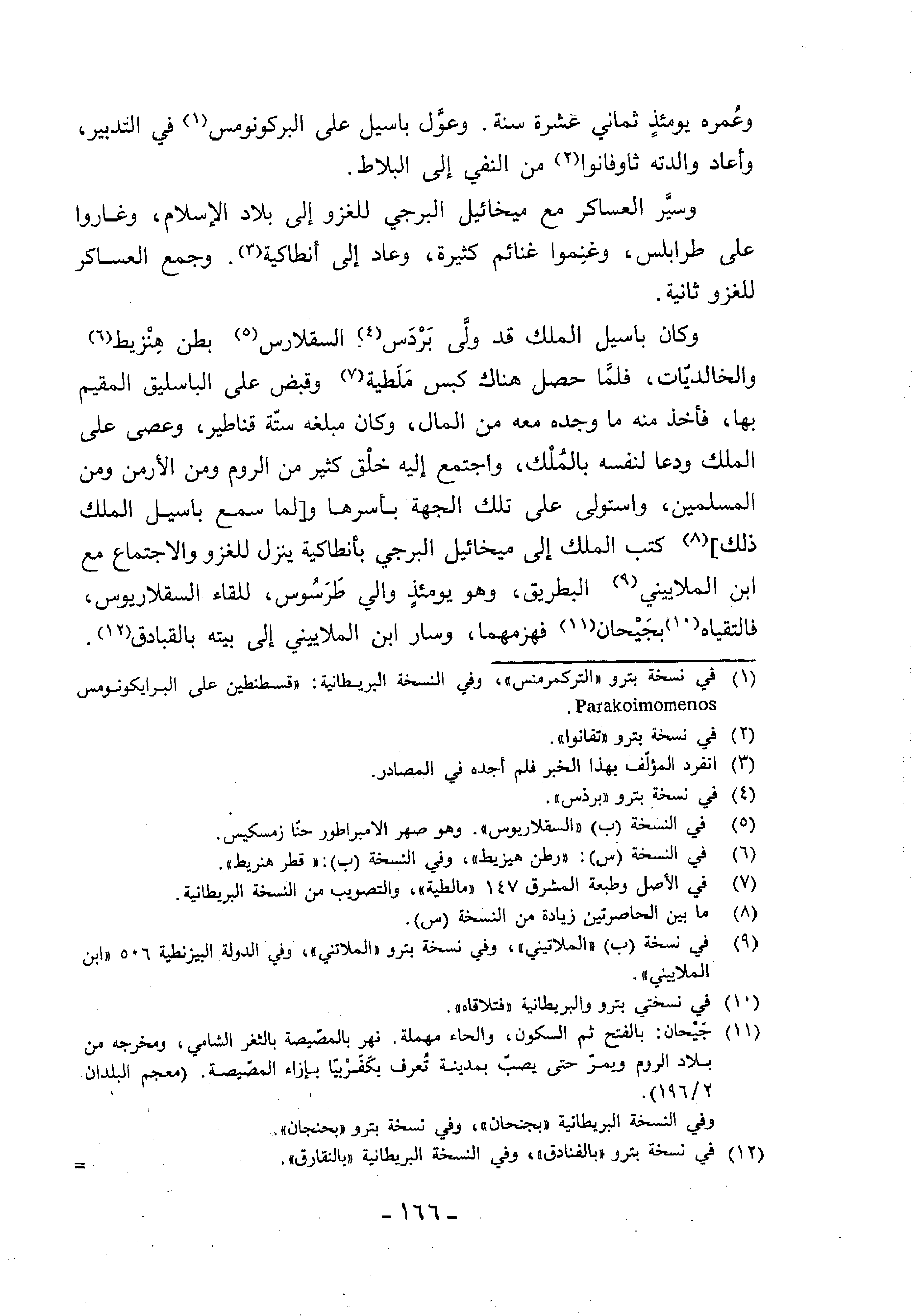 (¬1) في نسخة بترو «التركمرمنس»، وفي النسخة البريطانية: «قسطنطين على البرايكونومس. Parakoimomenos