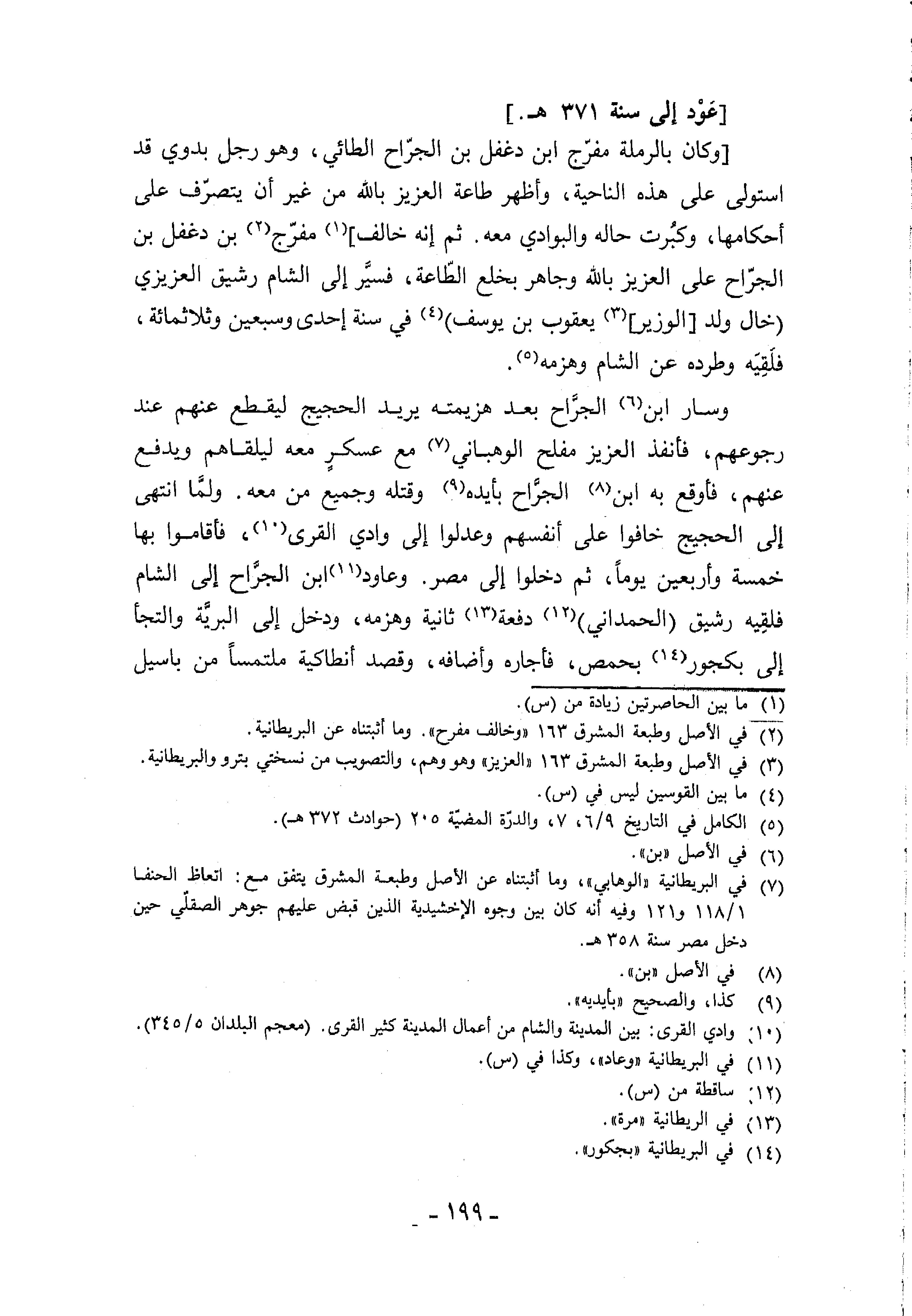 (¬7) في البريطانية «الوهابي»، وما أثبتناه عن الأصل وطبعة المشرق يتفق مع: اتعاظ الحنفا 1/ 118 و 121 وفيه أنه كان بين وجوه الإخشيدية الذين قبض عليهم جوهر الصقلّي حين دخل مصر سنة 358 هـ.