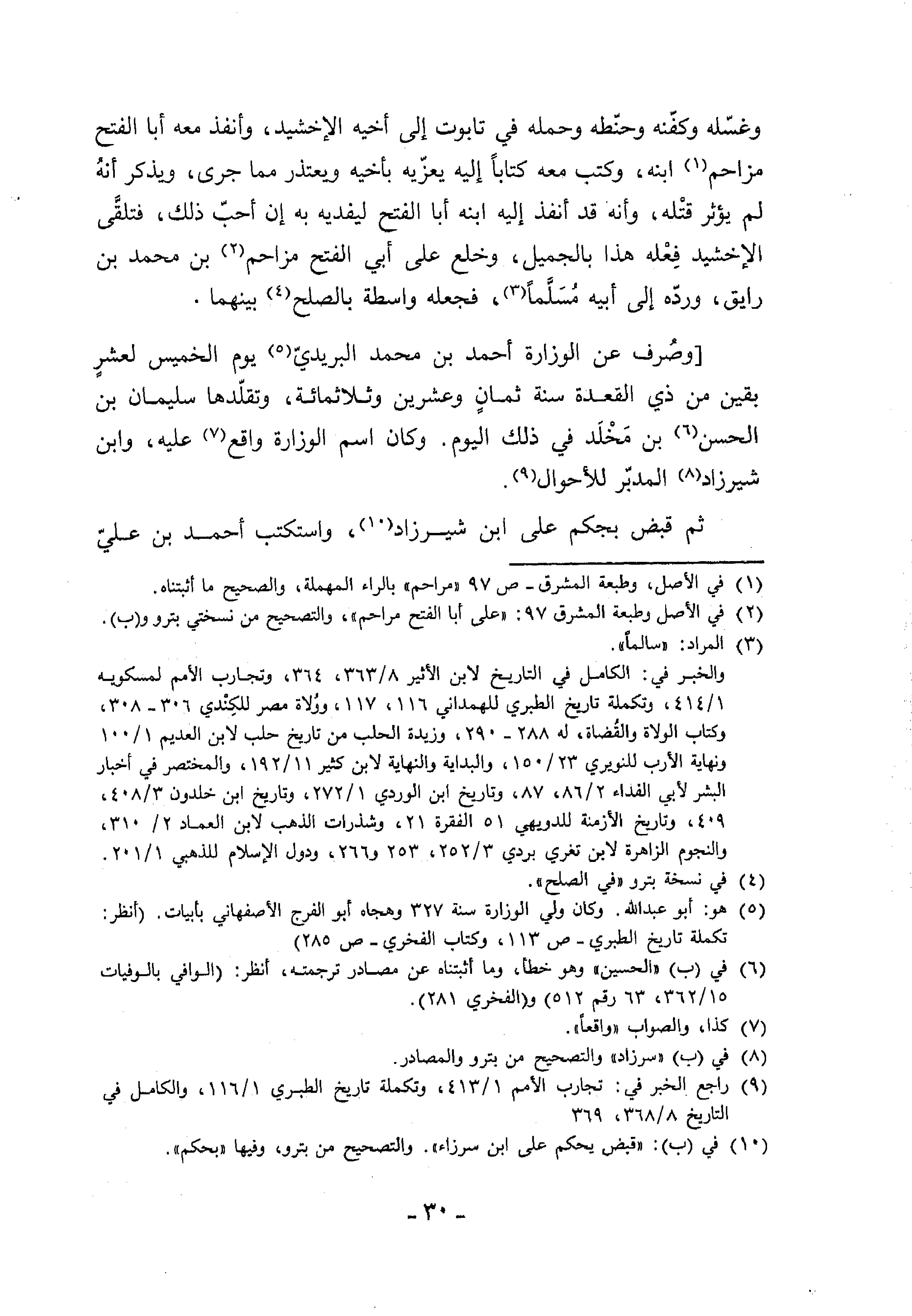 (¬5) هو: أبو عبد الله. وكان ولي الوزارة سنة 327 وهجاه أبو الفرج الأصفهاني بأبيات. (أنظر: تكملة تاريخ الطبري-ص 113، وكتاب الفخري-ص 285)