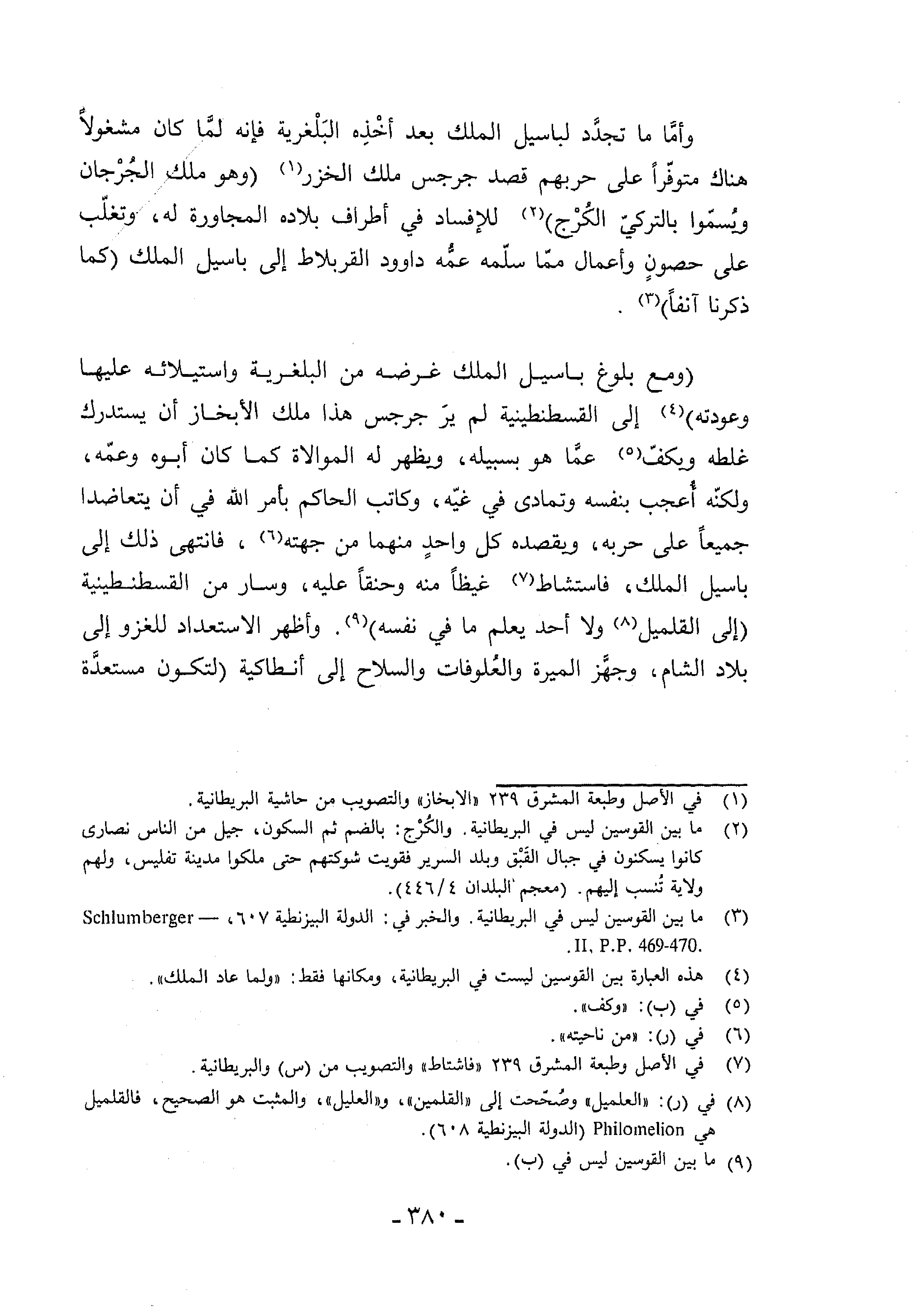 (¬3) ما بين القوسين ليس في البريطانية. والخبر في: الدولة البيزنطية. II,P .P .964 - 074. Schlumberger - ،607