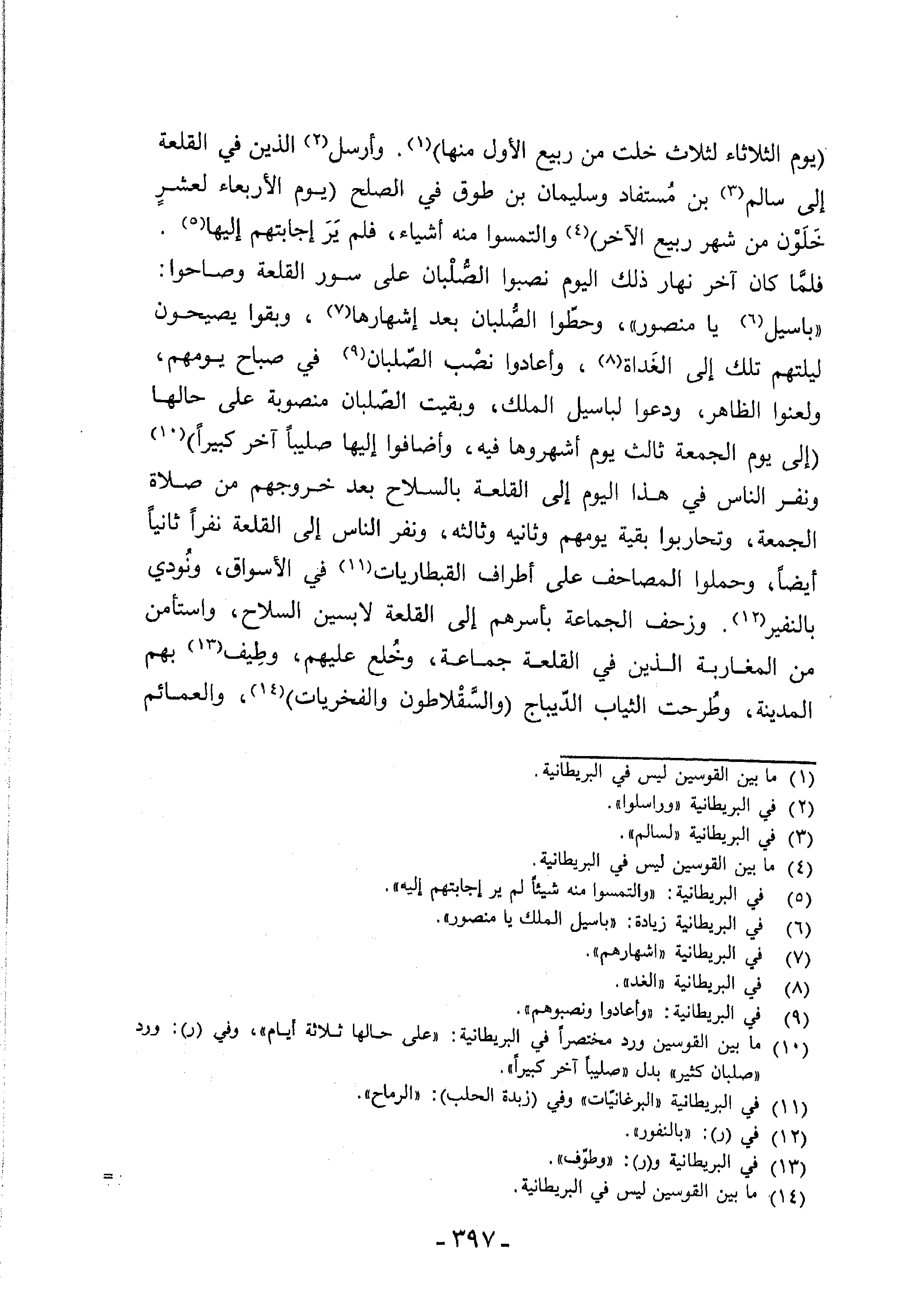 [المحاصرون في قلعة حلب يظهرون الصلبان وينادون لباسيل ملك الروم]