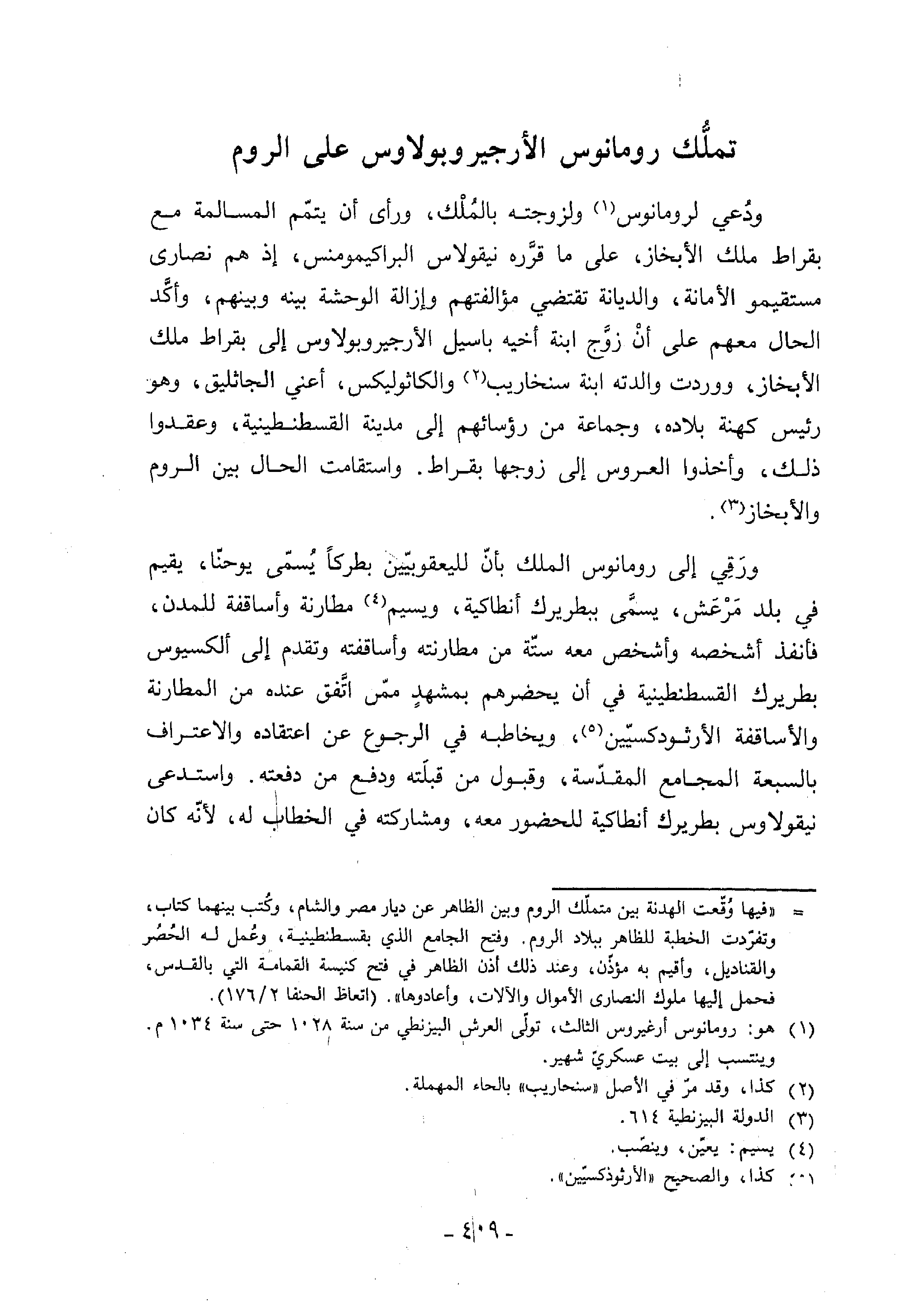 (¬1) هو: رومانوس أرغيروس الثالث، تولّى العرش البيزنطي من سنة 1028 حتى سنة 1034 م. وينتسب إلى بيت عسكريّ شهير.