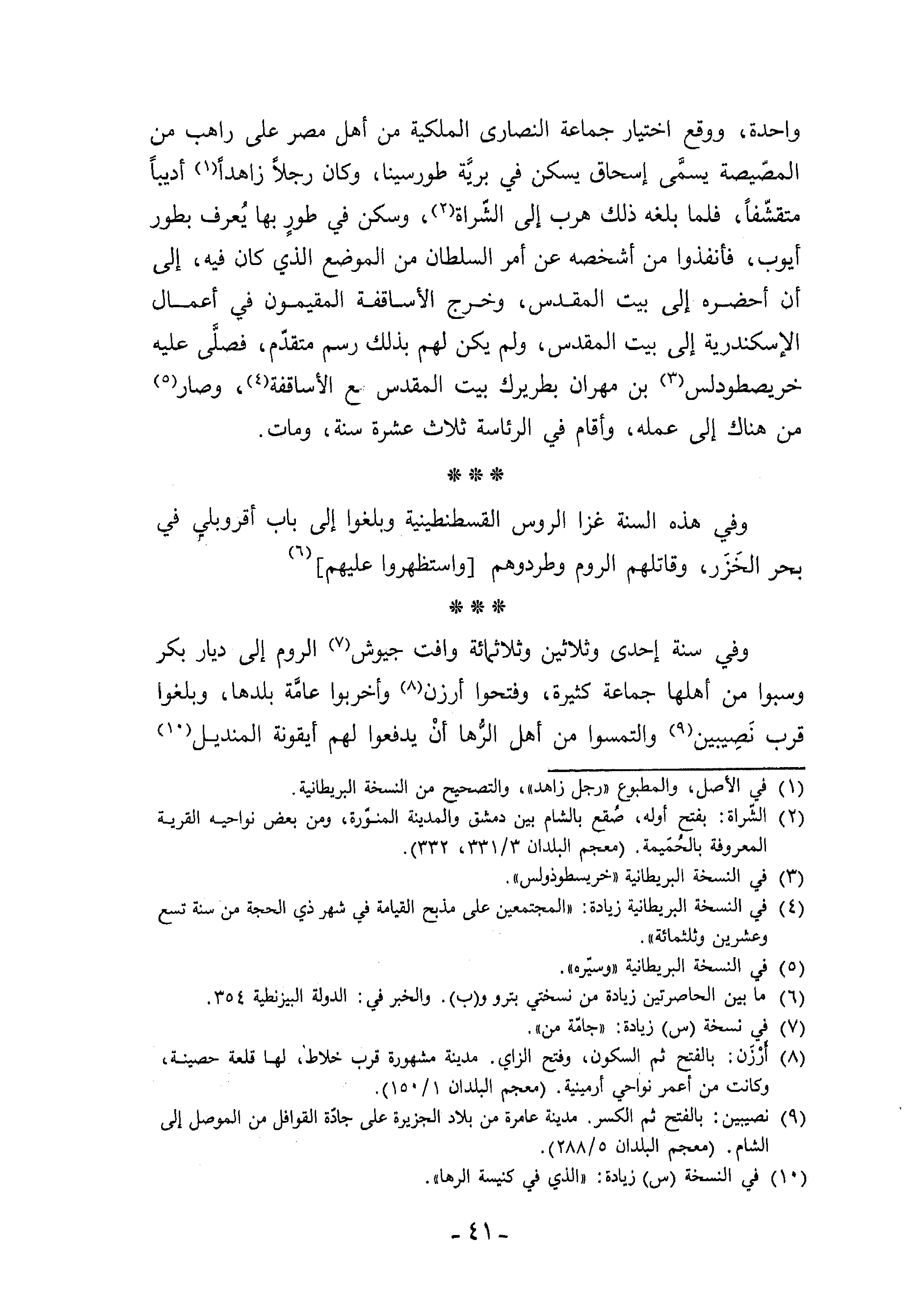 (¬4) في النسخة البريطانية زيادة: «المجتمعين على مذبح القيامة في شهر ذي الحجة من سنة تسع وعشرين وثلثمائة».