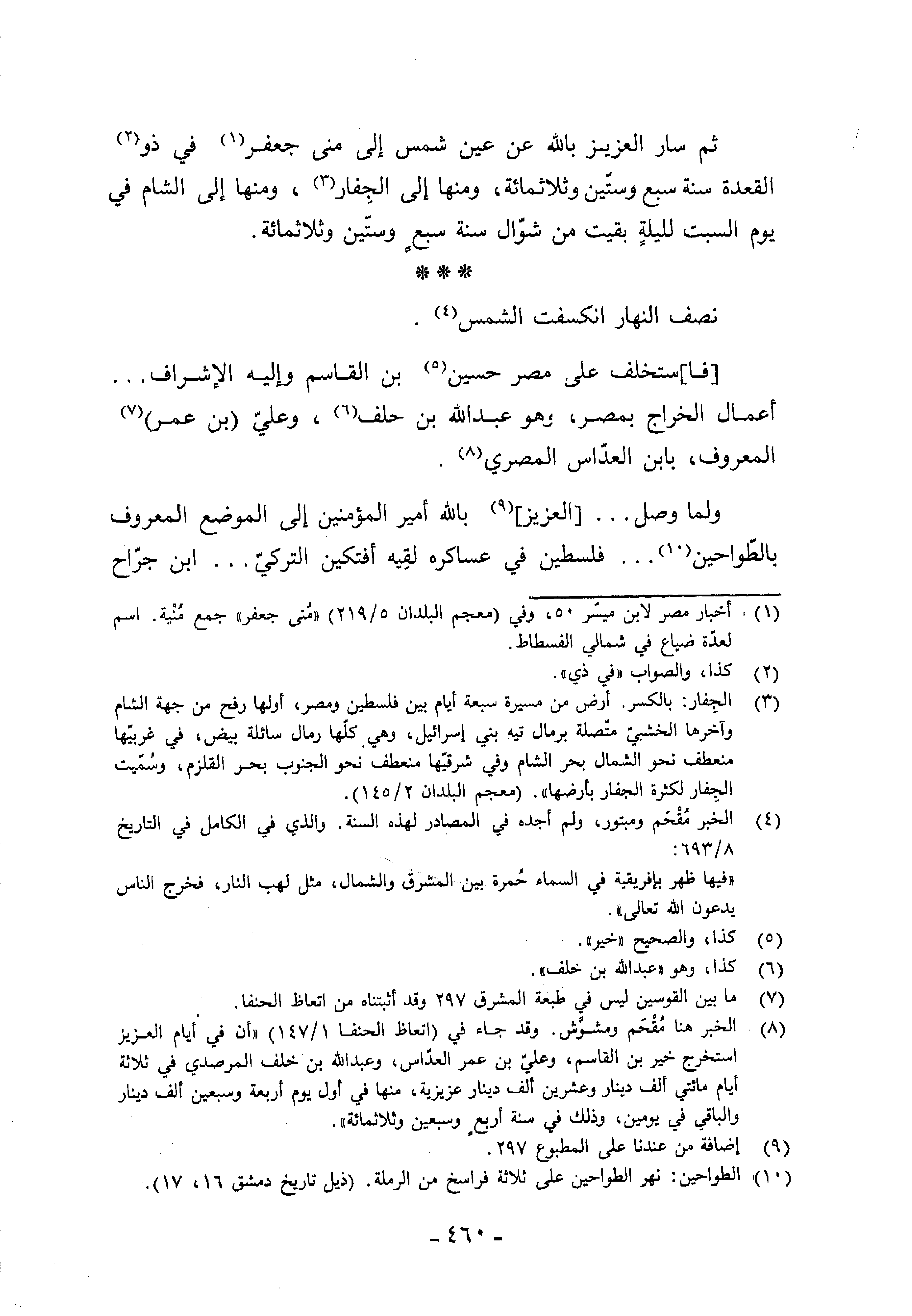 (¬1) أخبار مصر لابن ميسّر 50، وفي (معجم البلدان 5/ 219) «منى جعفر» جمع منية. اسم لعدّة ضياع في شمالي الفسطاط.
