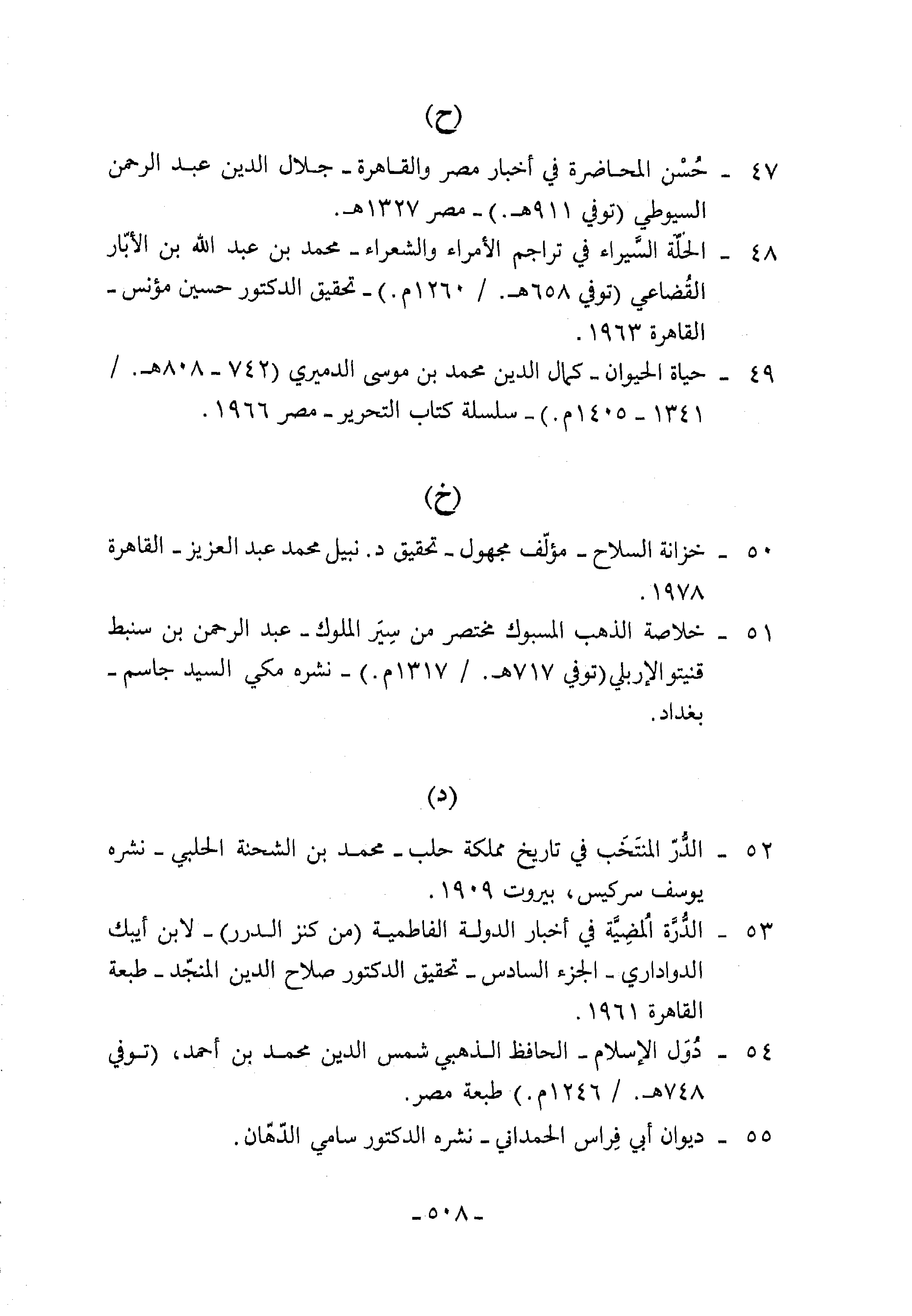 53 - الدّرّة المضيّة في أخبار الدولة الفاطمية (من كنز الدرر) -لابن أيبك الدواداري-الجزء السادس-تحقيق الدكتور صلاح الدين المنجّد-طبعة القاهرة 1961.