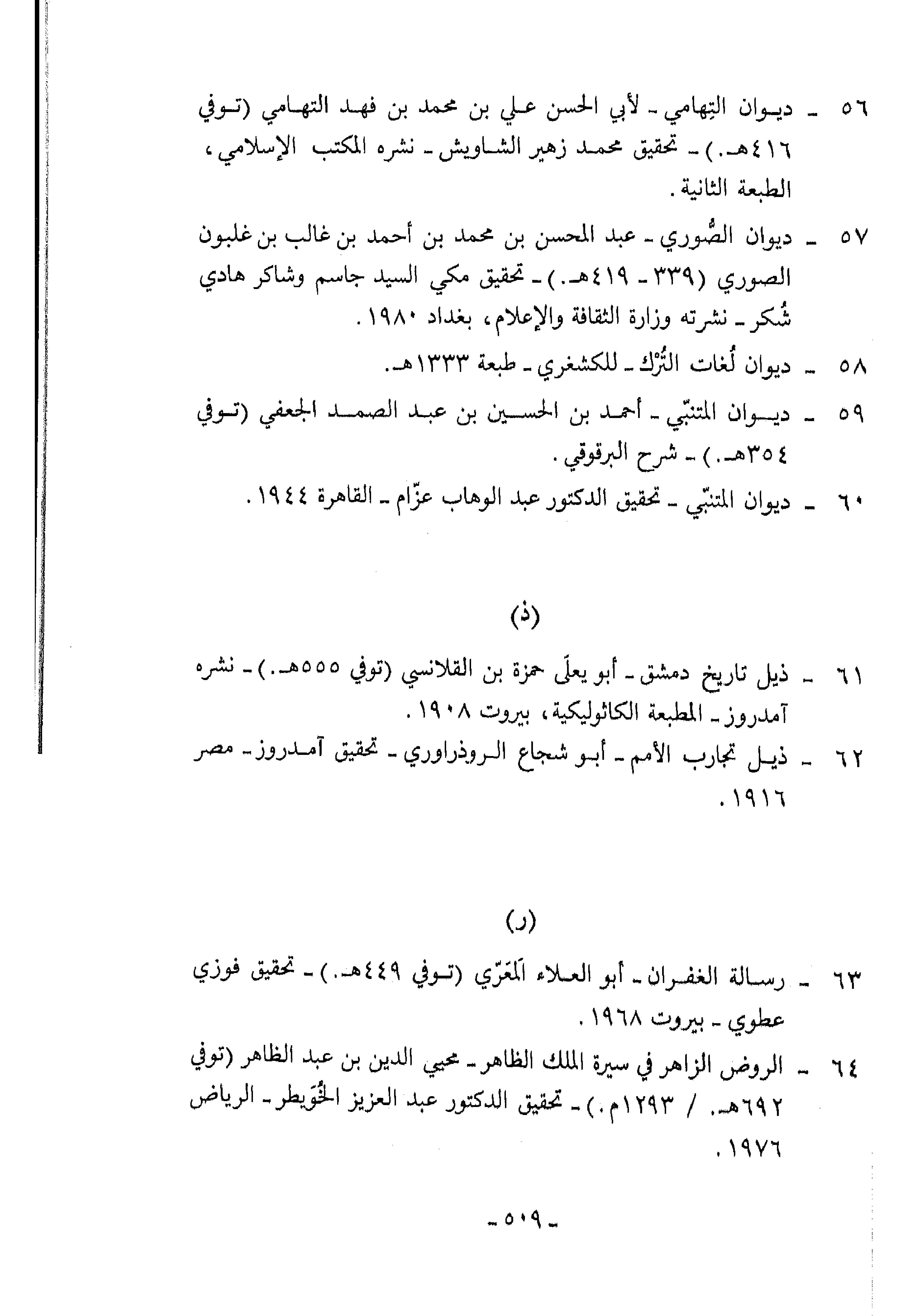 63 - رسالة الغفران-أبو العلاء المعرّي (توفي 449 هـ.) -تحقيق فوزي عطوي-بيروت 1968.