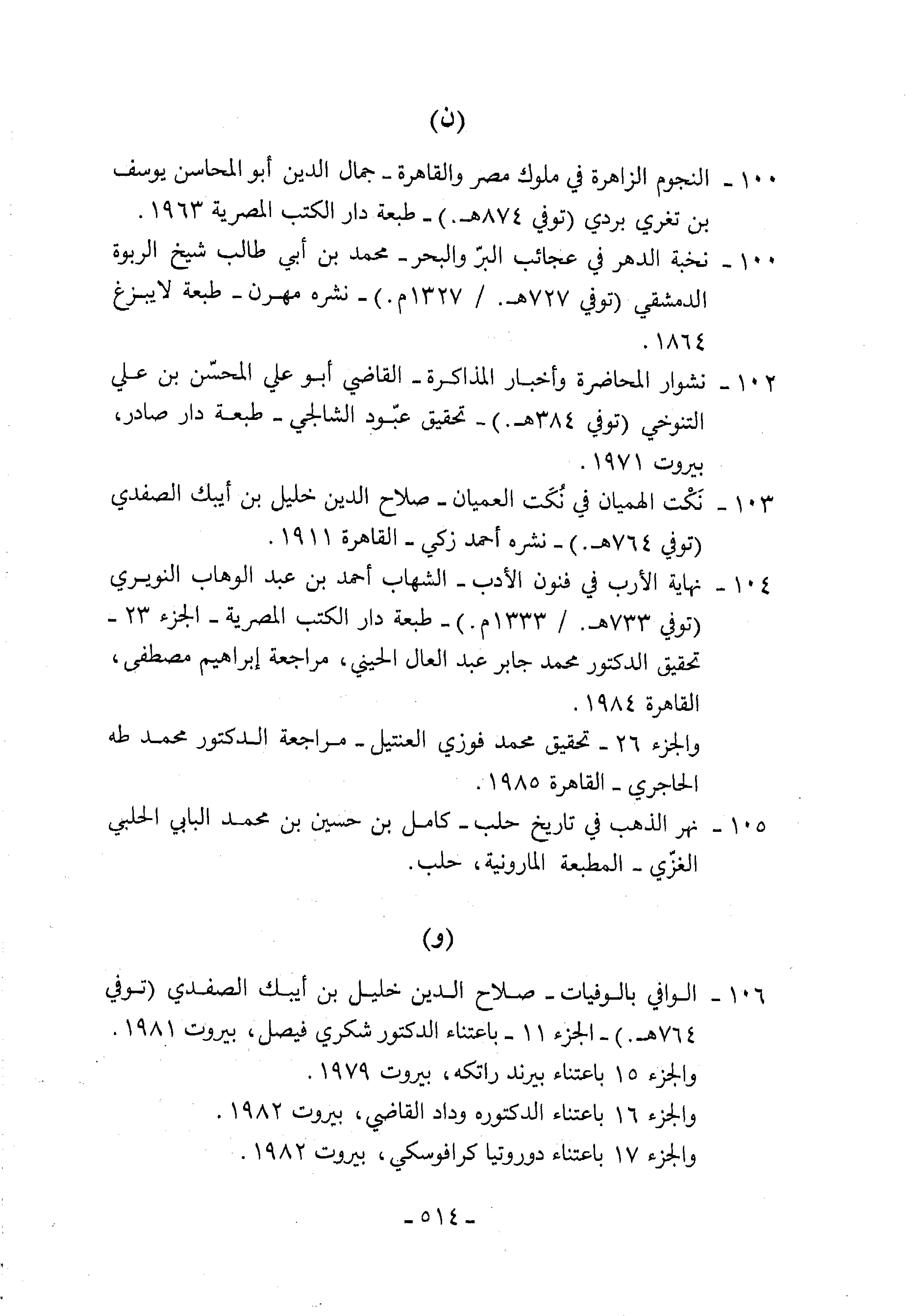 106 - الوافي بالوفيات-صلاح الدين خليل بن أيبك الصفدي (توفي 764 هـ.) -الجزء 11 - باعتناء الدكتور شكري فيصل، بيروت 1981.