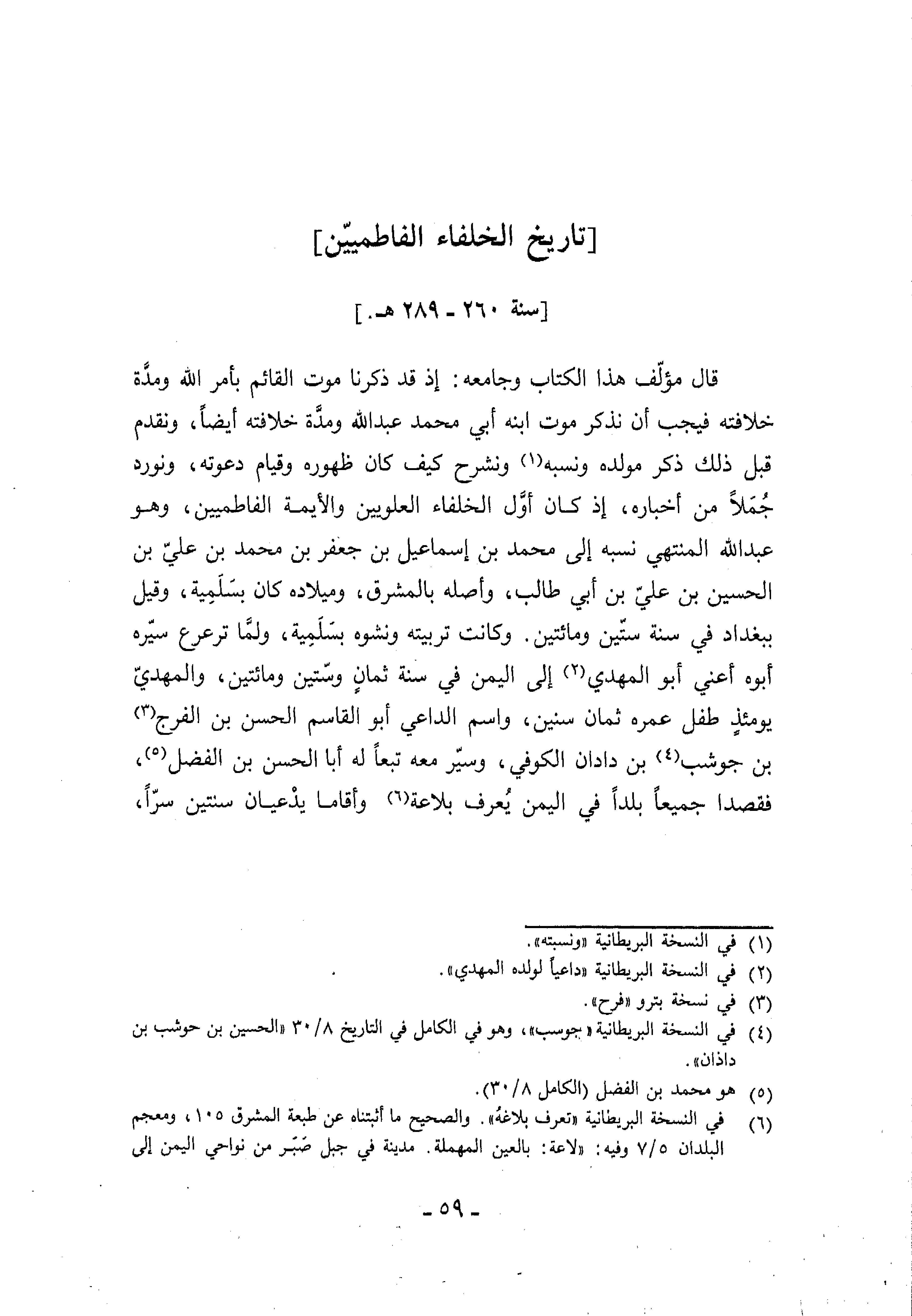 [تاريخ الخلفاء الفاطمييّن] [سنة 260 - 289 هـ.]