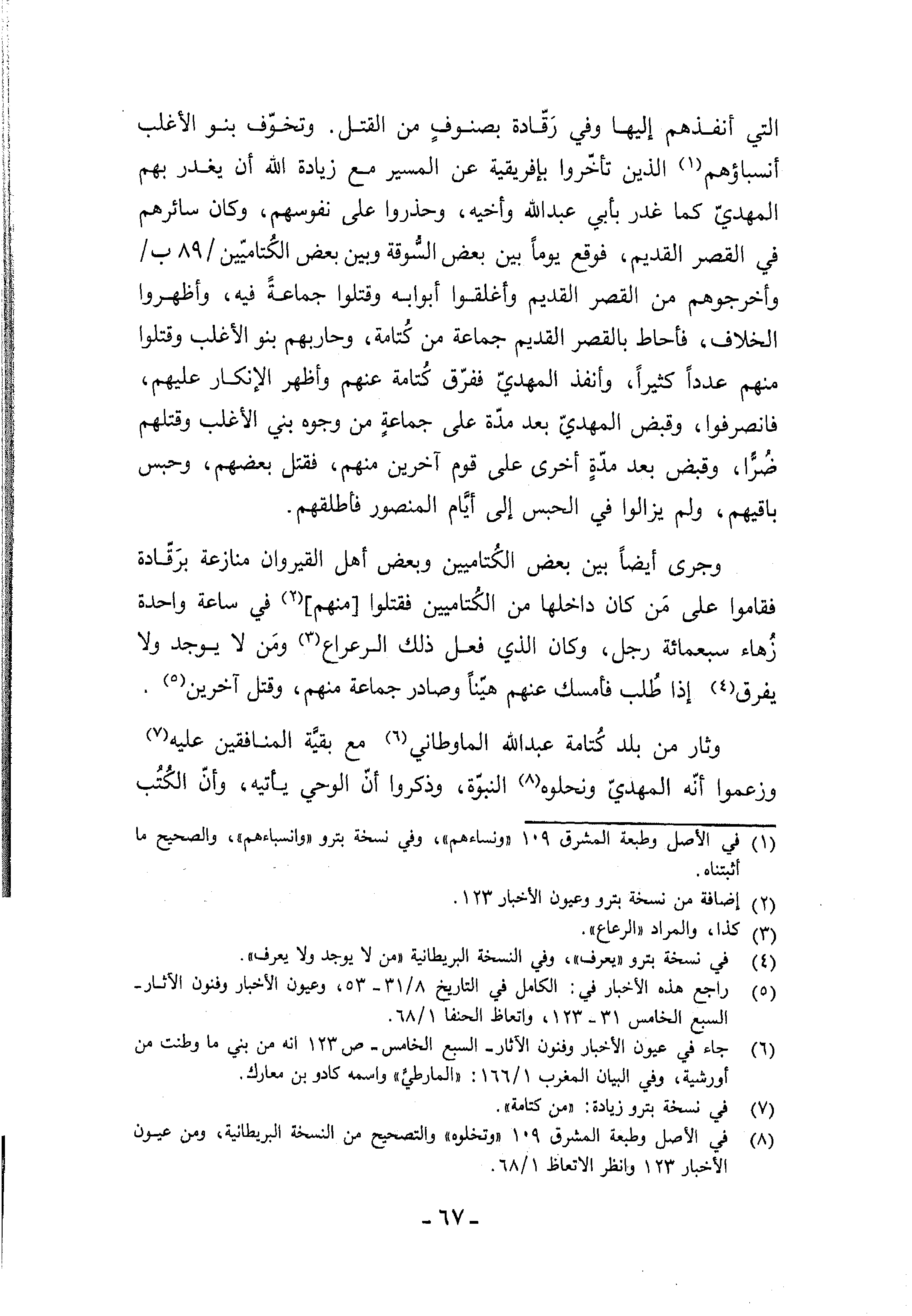 (¬5) راجع هذه الأخبار في: الكامل في التاريخ 8/ 31 - 53، وعيون الأخبار وفنون الآثار- السبع الخامس 31 - 123، واتعاظ الحنفا 1/ 68.