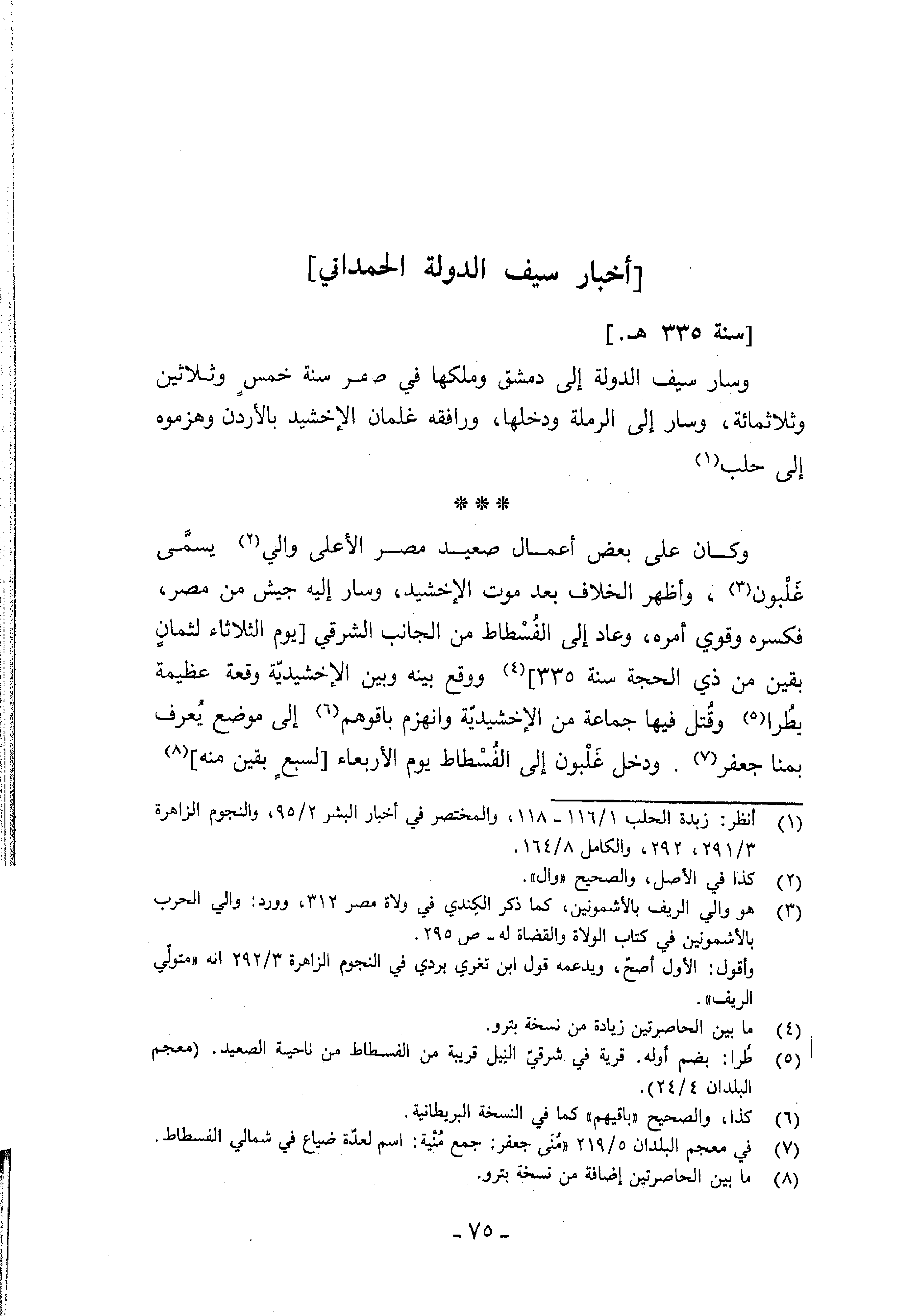 (¬3) هو والي الريف بالأشمونين، كما ذكر الكندي في ولاة مصر 312، وورد: والي الحرب بالأشمونين في كتاب الولاة والقضاة له-ص 295. وأقول: الأول أصحّ، ويدعمه قول ابن تغري بردي في النجوم الزاهرة 3/ 292 انه «متولّي الريف».