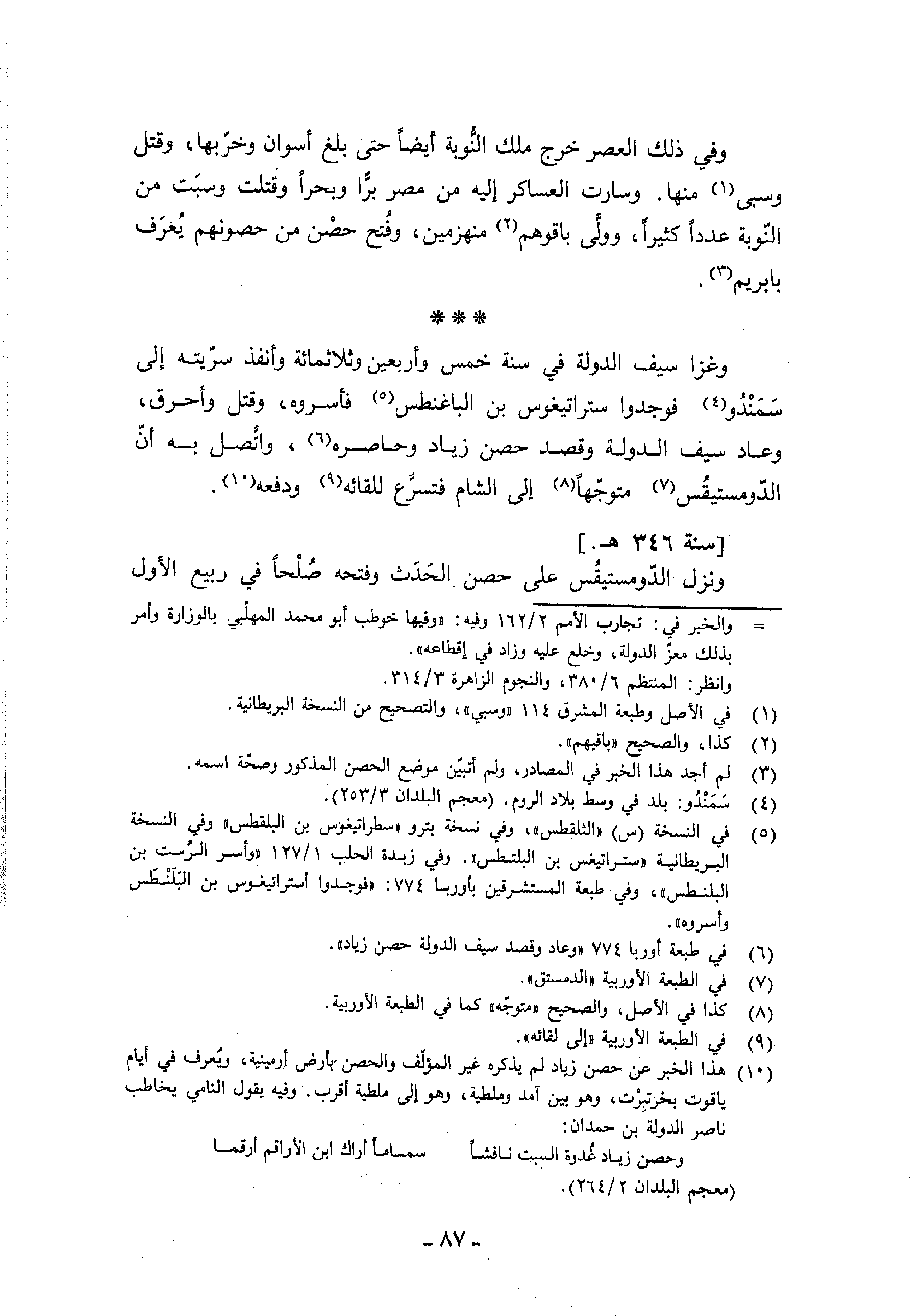 (¬6) في طبعة أوربا 774 «وعاد وقصد سيف الدولة حصن زياد».