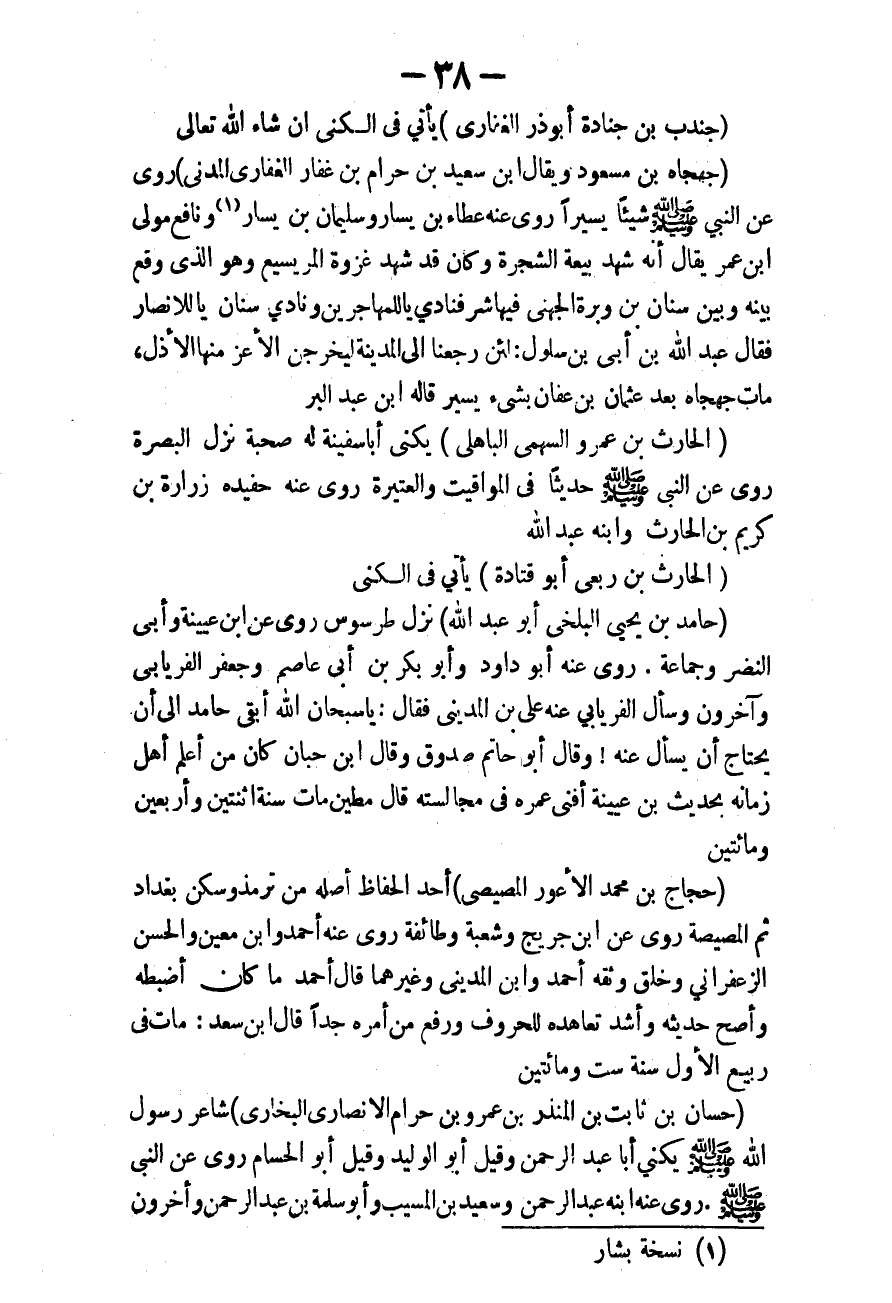 (حَسَّانُ بْنُ ثَابِتِ بْنِ الْمُنْذِرِ بْنِ عَمْرِو بْنِ حَرَامٍ الْأَنْصَارِيُّ الْبُخَارِيُّ) شَاعِرُ رَسُولِ اللَّهِ - صَلَّى اللَّهُ عَلَيْهِ وَسَلَّمَ - يُكَنَّى أَبَا عَبْدِ الرَّحْمَنِ وَقِيلَ أَبُو الْوَلِيدِ وَقِيلَ أَبُو الْحُسَامِ رَوَى عَنْ النَّبِيِّ - صَلَّى اللَّهُ عَلَيْهِ وَسَلَّمَ -. رَوَى عَنْهُ ابْنُهُ عَبْدُ الرَّحْمَنِ وَسَعِيدُ بْنُ الْمُسَيِّبِ وَأَبُو سَلَمَةَ بْنُ عَبْدِ الرَّحْمَنِ وَآخَرُونَ