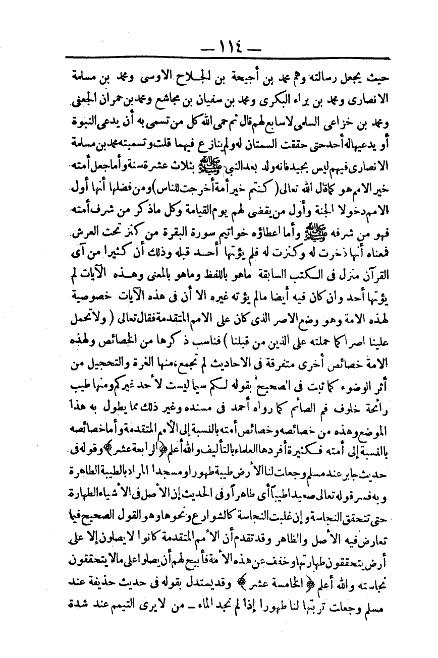 ـــــــــــــــــــــــــــــQحَيْثُ يَجْعَلُ رِسَالَتَهُ وَهُمْ مُحَمَّدُ بْنُ أُحَيْحَةَ بْنِ الْجُلَاحُ الْأَوْسِيُّ وَمُحَمَّدُ بْنُ مَسْلَمَةً الْأَنْصَارِيُّ وَمُحَمَّدُ بْنُ بَرَاءٍ الْبَكْرِيُّ وَمُحَمَّدُ بْنُ سُفْيَانَ بْنِ مُجَاشِعٍ وَمُحَمَّدُ بْنُ حُمْرَانَ الْجُعْفِيُّ وَمُحَمَّدُ بْنُ خُزَاعِيٍّ السُّلَمِيُّ لَا سَابِعَ لَهُمْ قَالَ ثُمَّ حَمَى اللَّهُ كُلَّ مَنْ تَسَمَّى بِهِ أَنْ يَدَّعِيَ النُّبُوَّةَ أَوْ يَدَّعِيَهَا لَهُ أَحَدٌ حَتَّى حُقِّقَتْ السِّمَتَانِ لَهُ وَلَمْ يُنَازَعْ فِيهِمَا.