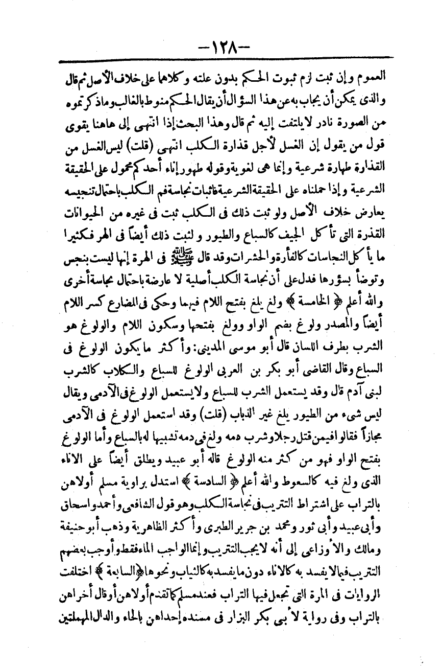 (قُلْت) : لَيْسَ الْغَسْلُ مِنْ الْقَذَارَةِ طَهَارَةً شَرْعِيَّةً، وَإِنَّمَا هِيَ لُغَوِيَّةٌ وَقَوْلُهُ طَهُورُ إنَاءِ أَحَدِكُمْ مَحْمُولٌ عَلَى الْحَقِيقَةِ الشَّرْعِيَّةِ، وَإِذَا حَمَلْنَاهُ عَلَى الْحَقِيقَةِ الشَّرْعِيَّةِ فَإِثْبَاتُ نَجَاسَةِ فَمِ الْكَلْبِ بِاحْتِمَالِ تَنْجِيسِهِ يُعَارِضُ خِلَافَ الْأَصْلِ، وَلَوْ ثَبَتَ ذَلِكَ فِي الْكَلْبِ ثَبَتَ فِي غَيْرِهِ مِنْ الْحَيَوَانَاتِ الْقَذِرَةِ الَّتِي تَأْكُلُ الْجِيَفَ كَالسِّبَاعِ، وَالطُّيُورِ وَلَثَبَتَ ذَلِكَ أَيْضًا فِي الْهِرِّ فَكَثِيرًا مَا يَأْكُلُ النَّجَاسَاتِ كَالْفَأْرَةِ، وَالْحَشَرَاتِ، وَقَدْ قَالَ - صَلَّى اللَّهُ عَلَيْهِ وَسَلَّمَ - فِي الْهِرَّةِ: إنَّهَا لَيْسَتْ بِنَجِسٍ وَتَوَضَّأَ بِسُؤْرِهَا فَدَلَّ عَلَى أَنَّ نَجَاسَةَ الْكَلْبِ أَصْلِيَّةٌ لَا عَارِضَةٌ بِاحْتِمَالِ نَجَاسَةٍ أُخْرَى وَاَللَّهُ أَعْلَمُ.
