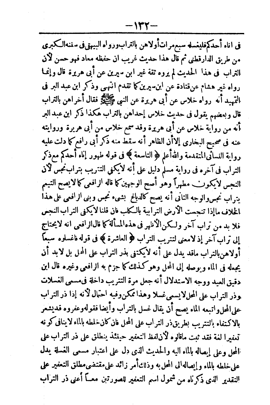 ـــــــــــــــــــــــــــــQفِي إنَاءِ أَحَدِكُمْ فَلْيَغْسِلْهُ سَبْعَ مَرَّاتٍ أُولَاهُنَّ بِالتُّرَابِ» وَرَوَاهُ الْبَيْهَقِيُّ فِي سُنَنِهِ الْكُبْرَى مِنْ طَرِيقِ الدَّارَقُطْنِيِّ، ثُمَّ قَالَ هَذَا حَدِيثٌ غَرِيبٌ إنْ حَفِظَهُ مُعَاذٌ فَهُوَ حَسَنٌ؛ لِأَنَّ التُّرَابَ فِي هَذَا الْحَدِيثِ لَمْ يَرْوِهِ ثِقَةٌ غَيْرُ ابْنِ سِيرِينَ عَنْ أَبِي هُرَيْرَةَ قَالَ: وَإِنَّمَا رَوَاهُ غَيْرُ هِشَامٍ عَنْ قَتَادَةَ عَنْ ابْنِ سِيرِينَ كَمَا تَقَدَّمَ انْتَهَى وَذَكَرَ ابْنُ عَبْدِ الْبَرِّ فِي التَّمْهِيدِ أَنَّهُ رَوَاهُ خِلَاسٌ عَنْ أَبِي هُرَيْرَةَ عَنْ النَّبِيِّ - صَلَّى اللَّهُ عَلَيْهِ وَسَلَّمَ - فَقَالَ «أُخْرَاهُنَّ بِالتُّرَابِ» قَالَ وَبَعْضُهُمْ يَقُولُ فِي حَدِيثِ خِلَاسٍ إحْدَاهُنَّ بِالتُّرَابِ هَكَذَا ذَكَرَ ابْنُ عَبْدِ الْبَرِّ أَنَّهُ مِنْ رِوَايَةِ خِلَاسٍ عَنْ أَبِي هُرَيْرَةَ، وَقَدْ سَمِعَ خِلَاسٌ مِنْ أَبِي هُرَيْرَةَ وَرِوَايَتُهُ عَنْهُ فِي صَحِيحِ الْبُخَارِيِّ إلَّا أَنَّ الظَّاهِرَ أَنَّهُ سَقَطَ مِنْهُ ذِكْرُ أَبِي رَافِعٍ كَمَا دَلَّتْ عَلَيْهِ رِوَايَةُ النَّسَائِيّ الْمُتَقَدِّمَةُ وَاَللَّهُ أَعْلَمُ.
