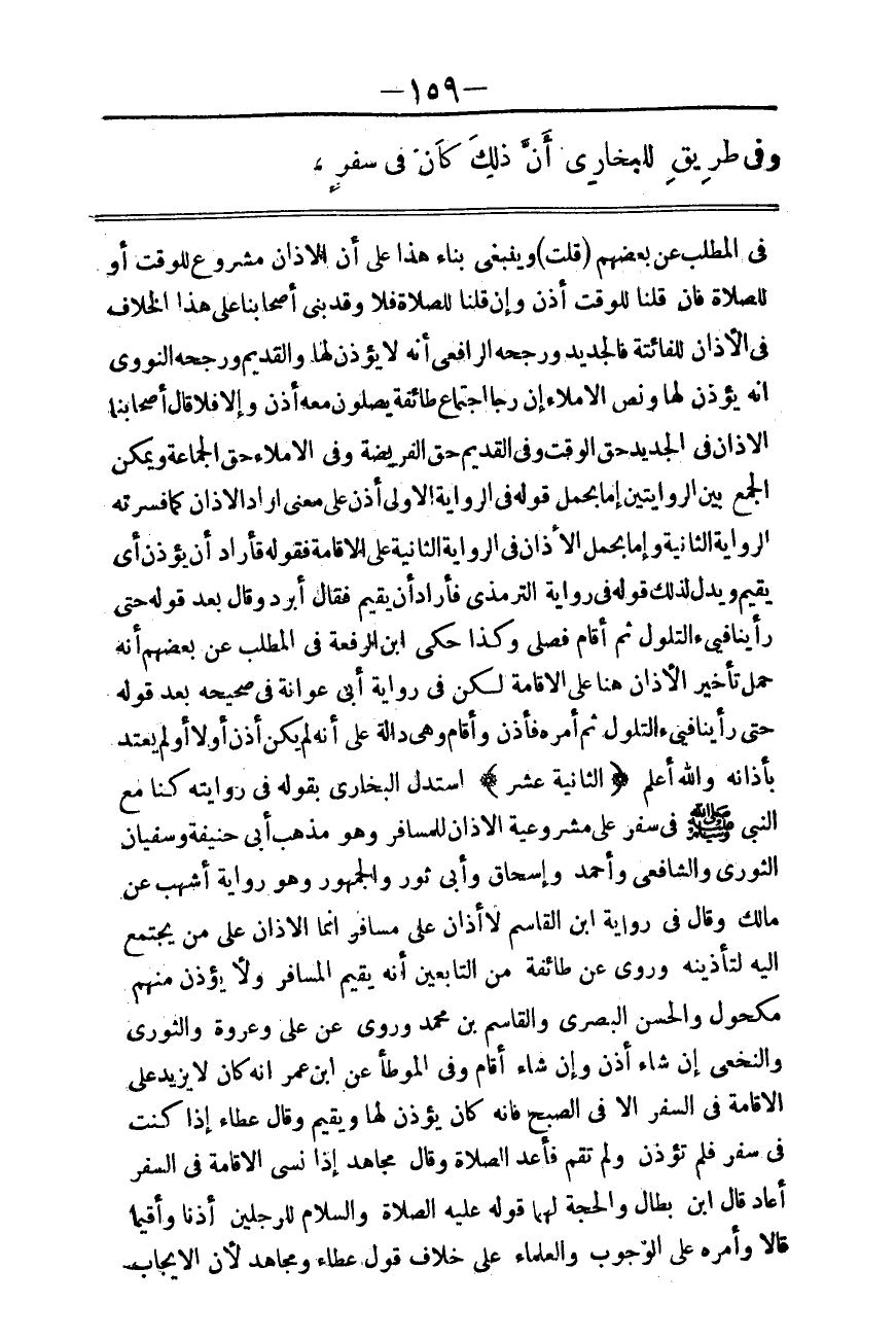 (الثَّانِيَةَ عَشَرَ) اسْتَدَلَّ الْبُخَارِيُّ بِقَوْلِهِ فِي رِوَايَتِهِ: كُنَّا مَعَ النَّبِيِّ - صَلَّى اللَّهُ عَلَيْهِ وَسَلَّمَ - فِي سَفَرٍ عَلَى مَشْرُوعِيَّةِ الْأَذَانِ لِلْمُسَافِرِ، وَهُوَ مَذْهَبُ أَبِي حَنِيفَةَ وَسُفْيَانَ الثَّوْرِيِّ وَالشَّافِعِيِّ وَأَحْمَدَ وَإِسْحَاقَ وَأَبِي ثَوْرٍ، وَالْجُمْهُورِ، وَهُوَ رِوَايَةُ أَشْهَبَ عَنْ مَالِكٍ وَقَالَ فِي رِوَايَةِ ابْنِ الْقَاسِمِ: لَا أَذَانَ عَلَى مُسَافِرٍ إنَّمَا الْأَذَانُ عَلَى مَنْ يَجْتَمِعُ إلَيْهِ لِتَأْذِينِهِ وَرُوِيَ عَنْ طَائِفَةٍ مِنْ التَّابِعِينَ أَنَّهُ يُقِيمُ الْمُسَافِرُ وَلَا يُؤَذِّنُ مِنْهُمْ مَكْحُولٌ وَالْحَسَنُ الْبَصْرِيُّ وَالْقَاسِمُ بْنُ مُحَمَّدٍ وَرُوِيَ عَنْ عَلِيٍّ وَعُرْوَةَ وَالثَّوْرِيِّ وَالنَّخَعِيِّ إنْ شَاءَ أَذَّنَ، وَإِنْ شَاءَ أَقَامَ وَفِي الْمُوَطَّإِ عَنْ ابْنِ عُمَرَ أَنَّهُ كَانَ لَا يَزِيدُ عَلَى الْإِقَامَةِ فِي السَّفَرِ إلَّا فِي الصُّبْحِ، فَإِنَّهُ كَانَ يُؤَذِّنُ لَهَا وَيُقِيمُ.
