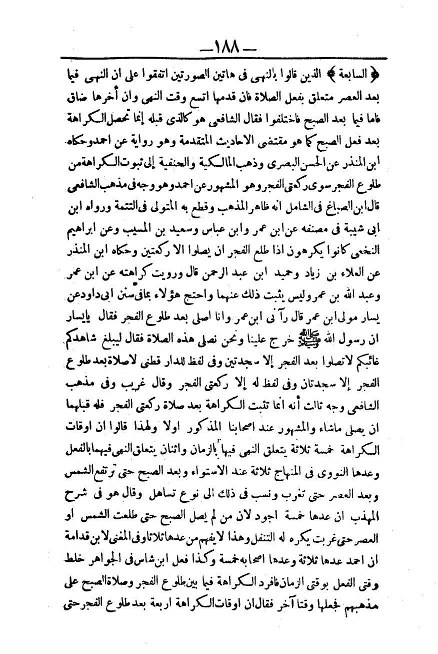 ـــــــــــــــــــــــــــــQالسَّابِعَةُ) الَّذِينَ قَالُوا بِالنَّهْيِ فِي هَاتَيْنِ الصُّورَتَيْنِ اتَّفَقُوا عَلَى أَنَّ النَّهْيَ فِيمَا بَعْدَ الْعَصْرِ مُتَعَلِّقٌ بِفِعْلِ الصَّلَاةِ، فَإِنْ قَدَّمَهَا اتَّسَعَ وَقْتُ النَّهْيِ، وَإِنْ أَخَّرَهَا ضَاقَ فَأَمَّا فِيمَا بَعْدَ الصُّبْحِ فَاخْتَلَفُوا فَقَالَ الشَّافِعِيُّ هُوَ كَاَلَّذِي قَبْلَهُ إنَّمَا تَحْصُلُ الْكَرَاهَةُ بَعْدَ فِعْلِ الصُّبْحِ كَمَا هُوَ مُقْتَضَى الْأَحَادِيثِ الْمُتَقَدِّمَةِ، وَهُوَ رِوَايَةٌ عَنْ أَحْمَدَ وَحَكَاهُ ابْنُ الْمُنْذِرِ عَنْ الْحَسَنِ الْبَصْرِيِّ.