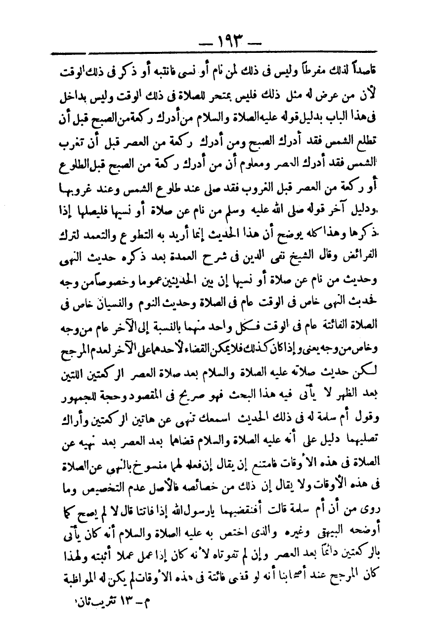 ـــــــــــــــــــــــــــــQقَاصِدًا لِذَلِكَ مُفَرِّطًا وَلَيْسَ فِي ذَلِكَ لِمَنْ نَامَ أَوْ نَسِيَ فَانْتَبَهَ أَوْ ذَكَرَ فِي ذَلِكَ الْوَقْتِ؛ لِأَنَّ مَنْ عَرَضَ لَهُ مِثْلُ ذَلِكَ فَلَيْسَ بِمُتَحَرٍّ لِلصَّلَاةِ فِي ذَلِكَ الْوَقْتِ وَلَيْسَ بِدَاخِلٍ فِي هَذَا الْبَابِ بِدَلِيلِ قَوْلِهِ - عَلَيْهِ الصَّلَاةُ وَالسَّلَامُ -: «مَنْ أَدْرَكَ رَكْعَةً مِنْ الصُّبْحِ قَبْلَ أَنْ تَطْلُعَ الشَّمْسُ فَقَدْ أَدْرَكَ الصُّبْحَ وَمَنْ أَدْرَكَ رَكْعَةً مِنْ الْعَصْرِ قَبْلَ أَنْ تَغْرُبَ الشَّمْسُ فَقَدْ أَدْرَكَ الْعَصْرَ» وَمَعْلُومٌ أَنَّ مَنْ أَدْرَكَ رَكْعَةً مِنْ الصُّبْحِ قَبْلَ الطُّلُوعِ أَوْ رَكْعَةً مِنْ الْعَصْرِ قَبْلَ الْغُرُوبِ فَقَدْ صَلَّى عِنْدَ طُلُوعِ الشَّمْسِ وَعِنْدَ غُرُوبِهَا وَدَلِيلٌ آخَرُ قَوْلُهُ - صَلَّى اللَّهُ عَلَيْهِ وَسَلَّمَ - «مَنْ نَامَ عَنْ صَلَاةٍ أَوْ نَسِيَهَا فَلْيُصَلِّهَا إذَا ذَكَرَهَا» وَهَذَا كُلُّهُ يُوَضِّحُ أَنَّ هَذَا الْحَدِيثَ إنَّمَا أُرِيدَ بِهِ التَّطَوُّعُ وَالتَّعَمُّدُ لِتَرْكِ الْفَرَائِضِ وَقَالَ الشَّيْخُ تَقِيُّ الدِّينِ فِي شَرْحِ الْعُمْدَةِ بَعْدَ ذِكْرِهِ حَدِيثَ النَّهْيِ وَحَدِيثِ مَنْ نَامَ عَنْ صَلَاةٍ أَوْ نَسِيَهَا إنَّ بَيْنَ الْحَدِيثَيْنِ عُمُومًا وَخُصُوصًا مِنْ وَجْهٍ فَحَدِيثُ النَّهْيِ خَاصٌّ فِي الْوَقْتِ عَامٌّ فِي الصَّلَاةِ وَحَدِيثُ النَّوْمِ وَالنِّسْيَانِ خَاصٌّ فِي الصَّلَاةِ الْفَائِتَةِ عَامٌّ فِي الْوَقْتِ فَكُلُّ وَاحِدٍ مِنْهُمَا بِالنِّسْبَةِ إلَى الْآخَرِ عَامٌّ مِنْ وَجْهٍ وَخَاصٌّ مِنْ وَجْهٍ، يَعْنِي وَإِذَا كَانَ كَذَلِكَ فَلَا يُمْكِنُ الْقَضَاءُ لِأَحَدِهِمَا عَلَى الْآخَرِ لِعَدَمِ الْمُرَجَّحِ لَكِنَّ حَدِيثَ صَلَاتِهِ - عَلَيْهِ الصَّلَاةُ وَالسَّلَامُ - بَعْدَ صَلَاةِ الْعَصْرِ الرَّكْعَتَيْنِ اللَّتَيْنِ بَعْدَ الظُّهْرِ لَا يَأْتِي فِيهِ هَذَا الْبَحْثُ فَهُوَ صَرِيحٌ فِي الْمَقْصُودِ وَحُجَّةٌ لِلْجُمْهُورِ وَقَوْلُ أُمِّ سَلَمَةَ لَهُ فِي ذَلِكَ الْحَدِيثِ أَسْمَعُك تَنْهَى عَنْ هَاتَيْنِ الرَّكْعَتَيْنِ وَأَرَاك تُصَلِّيهِمَا دَلِيلٌ عَلَى أَنَّهُ - عَلَيْهِ الصَّلَاةُ وَالسَّلَامُ - قَضَاهُمَا بَعْدَ الْعَصْرِ بَعْدَ نَهْيِهِ عَنْ الصَّلَاةِ فِي هَذِهِ الْأَوْقَاتِ فَامْتَنَعَ أَنْ يُقَالَ إنَّ فِعْلَهُ لَهُمَا مَنْسُوخٌ بِالنَّهْيِ عَنْ الصَّلَاةِ فِي هَذِهِ الْأَوْقَاتِ وَلَا يُقَالُ إنَّ ذَلِكَ مِنْ خَصَائِصِهِ فَالْأَصْلُ عَدَمُ التَّخْصِيصِ.